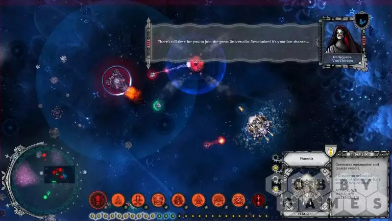 Выберите свою сторону: Великобритания, Небесная Империя, Священный Альянс или Сублимные Врата, и собирайте метаматерию во имя вашего императора, или присоединяйтесь к Чк’Ратии и возглавьте Революцию против этих галактических деспотов, скупивших кур!