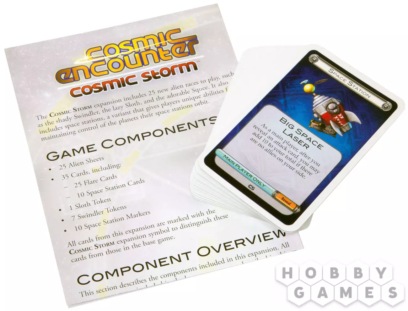 Cosmic Storm – четвёртое дополнение для настольной игры Cosmic Encounter, которое заставляет галактику задрожать, ведь в ней появляется целых 25 новых рас! Также вас ждут 10 космических станций, которые могут быть присоединены к вашим стартовым планетам: эти станции дают вам дополнительные возможности до тех пор, пока на планете есть хотя бы один ваш корабль. Новые механики и расы добавляют огромное количество новых стратегий для завоевания галактики.