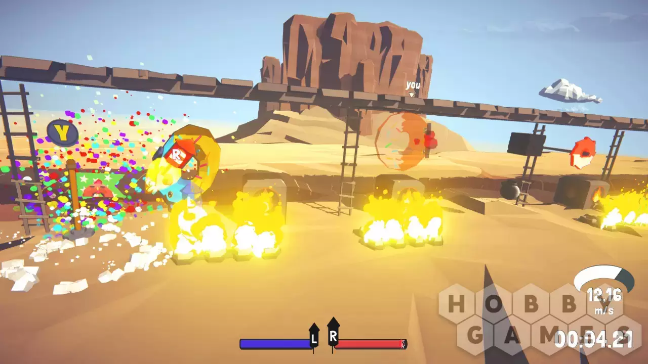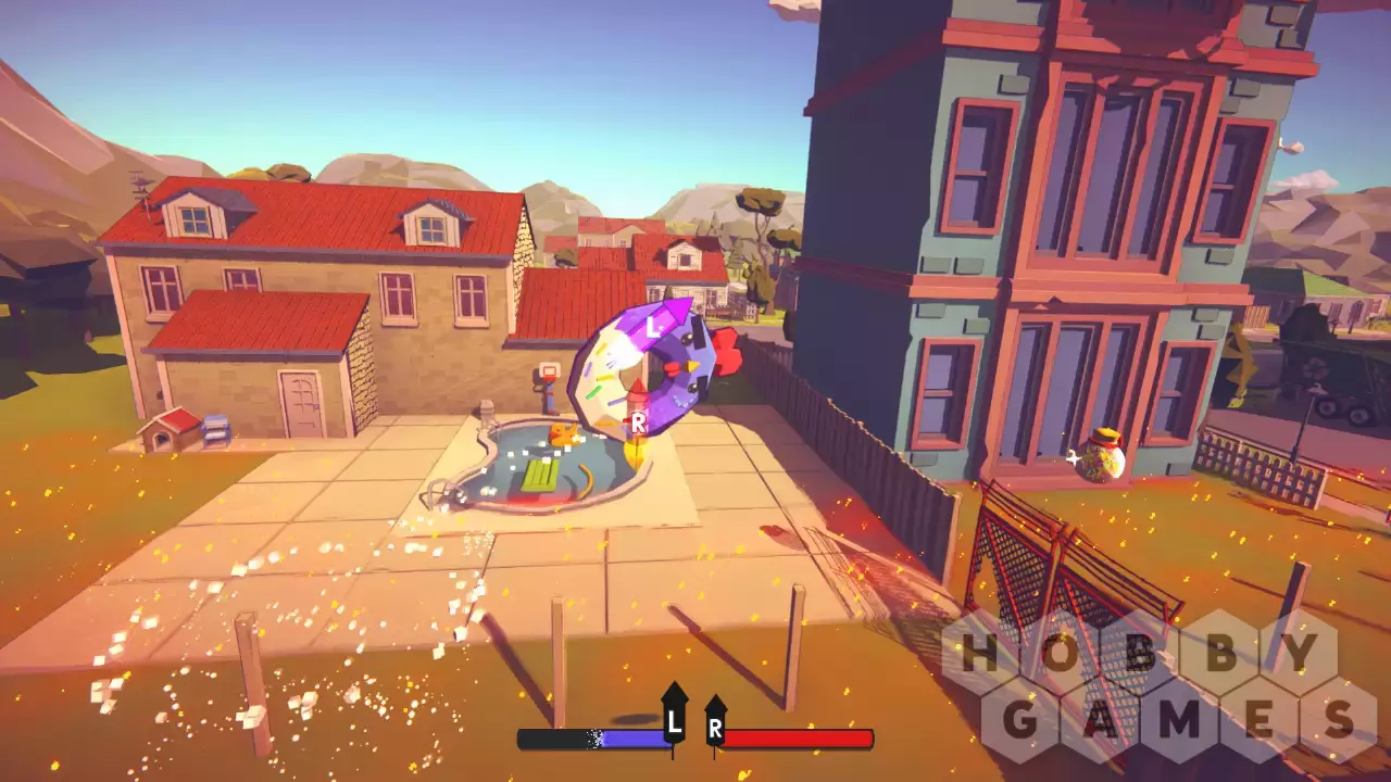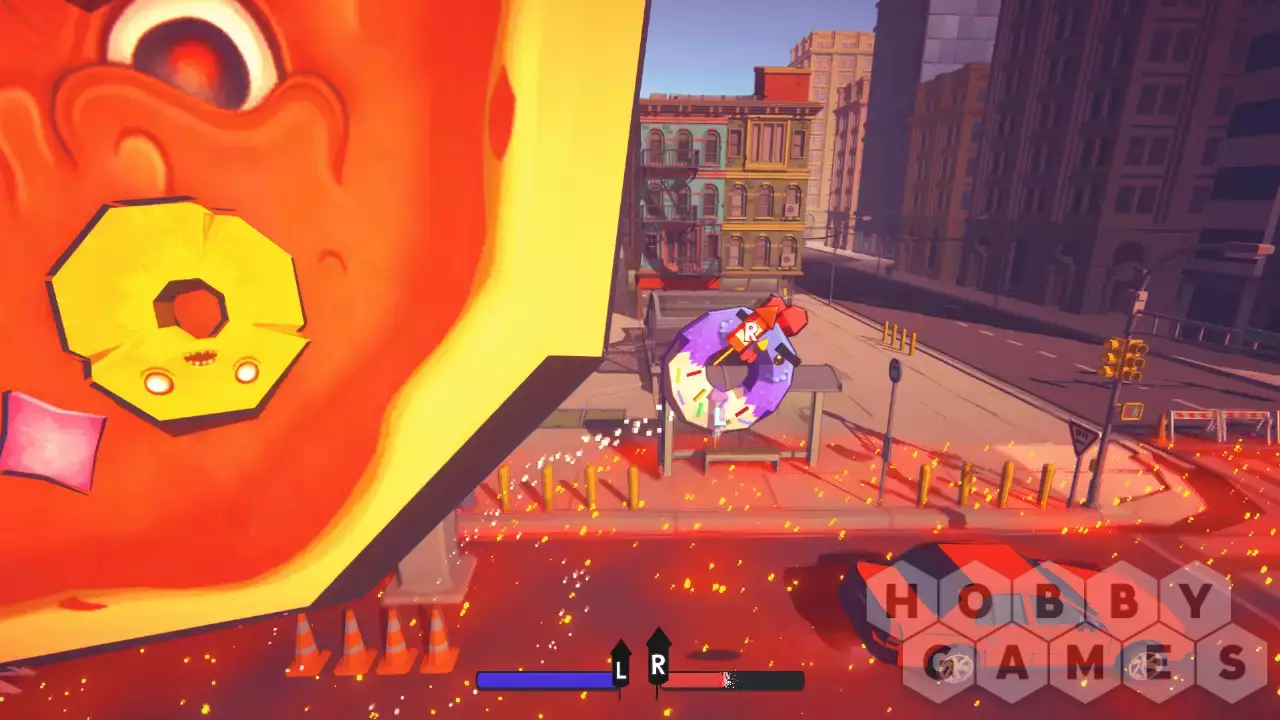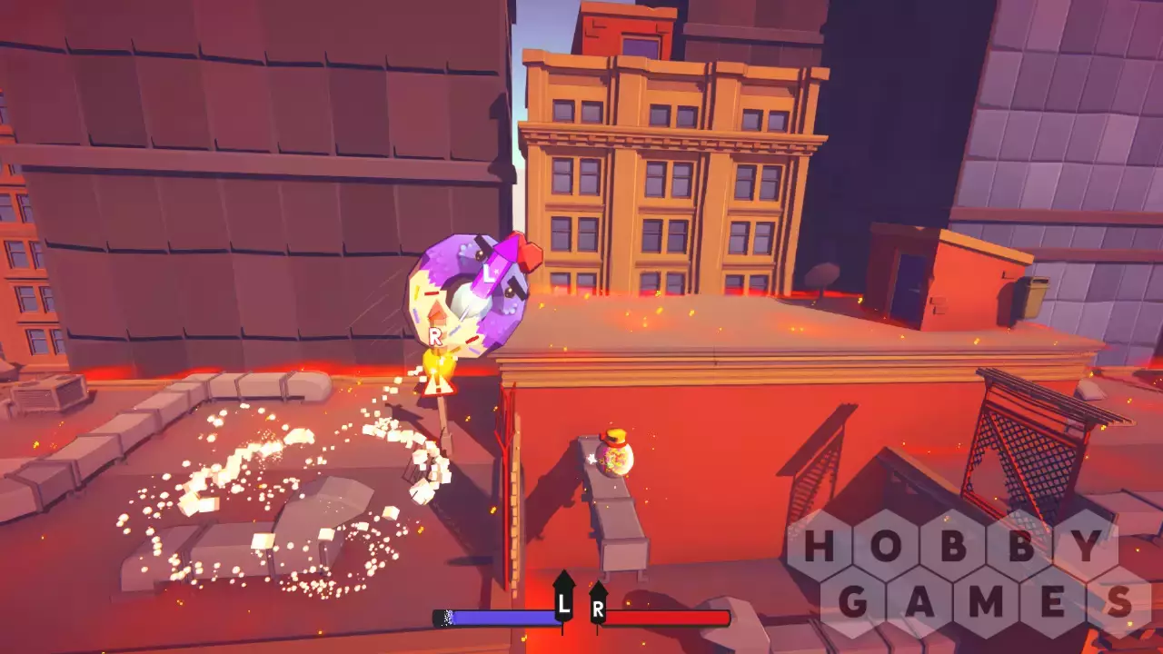 В дополнение к обычному прохождению мы создали дополнительную систему сложности, которая полностью меняет игру с контроллером. Мы предлагаем умную систему с ракетами, которые закреплены на пончике и позволяют двигаться вперед. Но, несмотря на внешнюю простоту, это сложный способ передвижения в игровом мире. Активируйте нужную ракету в нужное время. В противном случае вы рискуете пойти неверным путем.