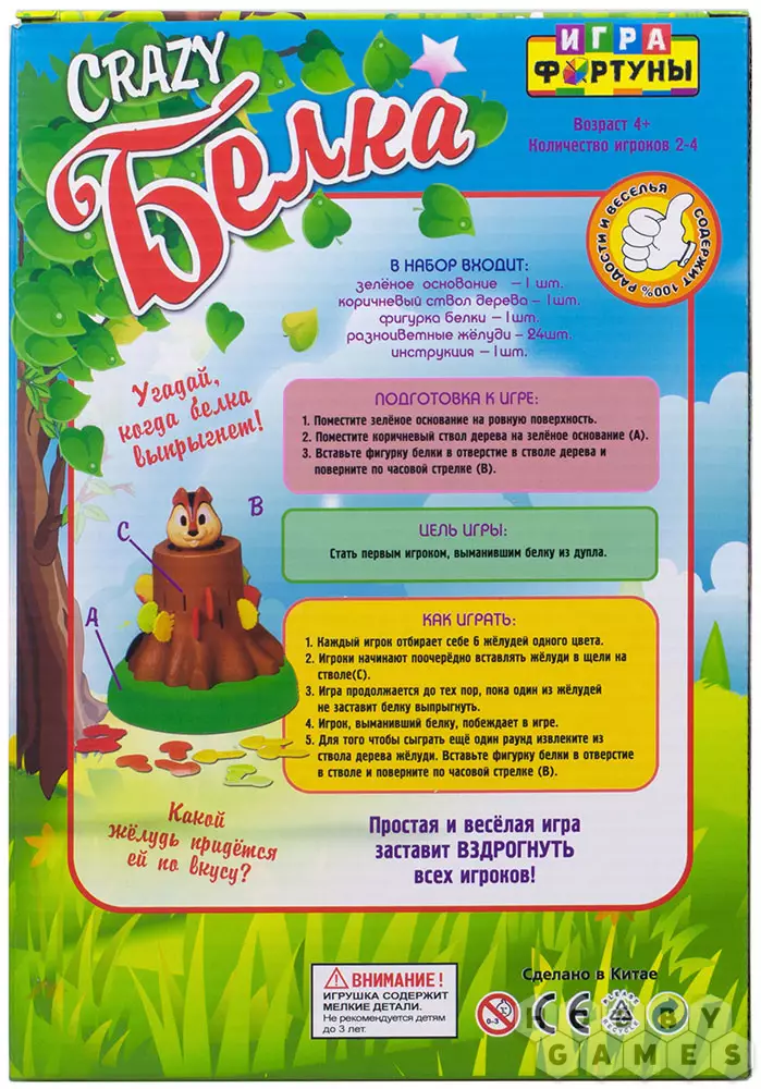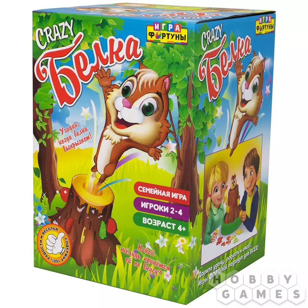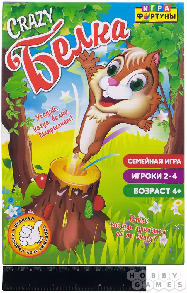 Для этого каждый из участников вооружается шестью желудями одного цвета – их нужно будет вставлять в специальные отверстия в основании дерева. Игра заканчивается, когда белка выпрыгнет из дупла за одним из цветных желудей. Эта настольная игра гарантирует вашим детям море веселья, а благодаря динамичному формату они захотят сыграть в неё снова и снова.