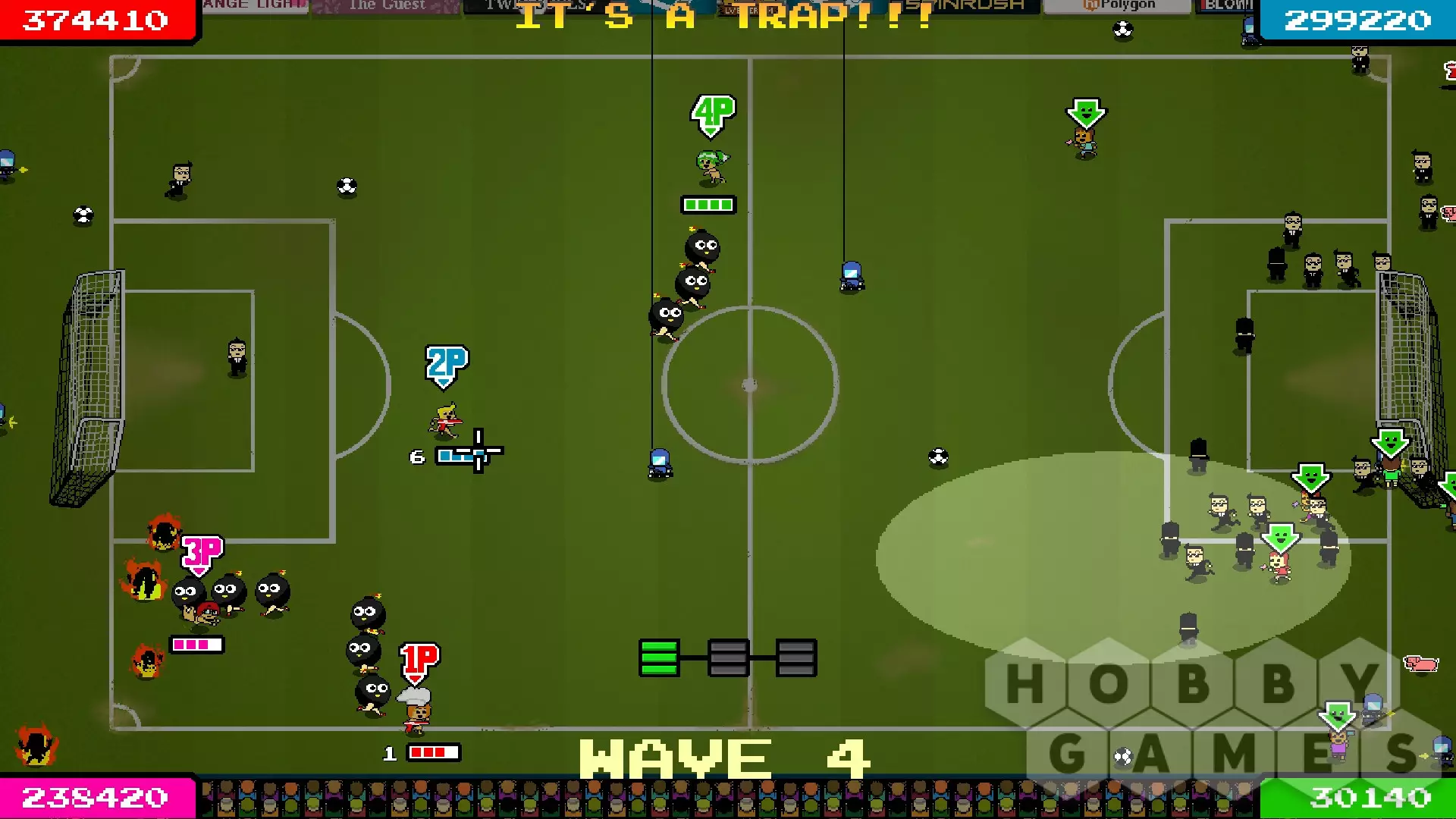 - разнообразный геймплэй с множеством режимов до 4 игроков в стиле ретро аркады