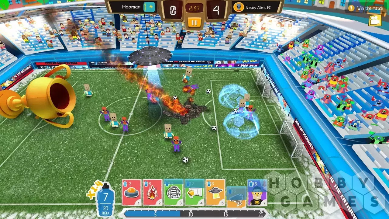 Crazy Soccer – это быстрые (до пяти минут), насыщенные матчи между самыми необычными командами, какие только можно представить. Англичане в цилиндрах? Суровые блондинки? Горящие коровы или орущие спартанцы? Кастомизация команды позволяет создать самые неожиданные комбинации. Но свежесозданная команда не справится сама с победой на галактическом Чемпионате: запустите на поле метеоритный дождь, используйте мины и легионеров с редкими способностями или заприте вратаря команды противника в клетку – все ради победы!