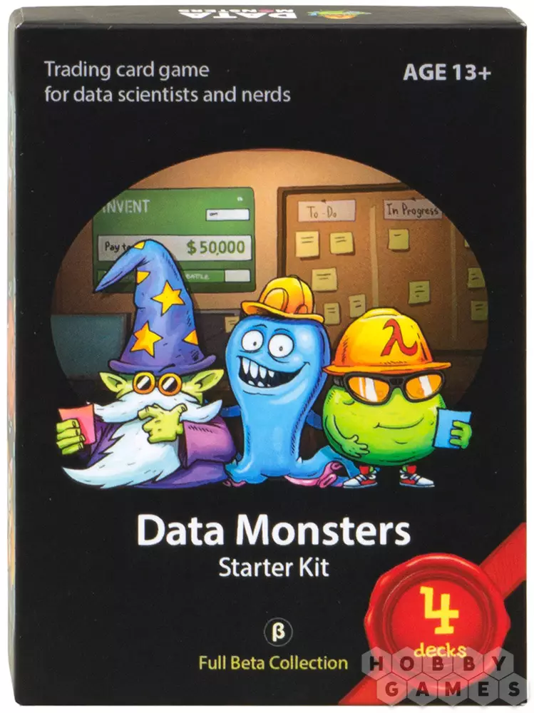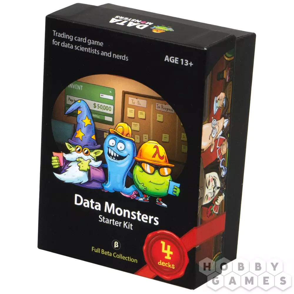 Перед вами – стартовый набор коллекционной карточной игры Data Monsters, посвящённой соревнованиям разных категорий программистов. В наборе четыре колоды, каждая из которых расскажет вам о том, чем живут работники стартапов и корпораций, майнеры криптовалюты и хакеры. Да-да, вам предстоит возглавить одну из таких команд – энтузиастов из стартапа, продвигающих свой продукт с горящими глазами, профессионалов из большой компании со всеми её плюсами и минусами, современных криптофермеров, живущими за счёт компьютерных вычислений, или хакеров, которые мешают всем остальным, сидя в казино. Управляйте своей лабораторией, нанимая монстров-программистов, выполняйте задания, используя современные инструменты, и наберите больше всех очков больших данных для победы!