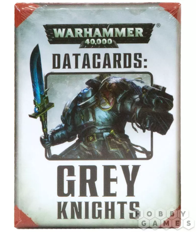 Datacards: Grey Knights – это набор из тридцати шести красочных карт, который содержит в себе семь карт психических сил для Серых Рыцарей и двадцать девять тактических карт. Эта колода заменяет стандартный набор, состоящий из шести карт эксклюзивных целей, которые вы можете найти в кодексе Серых Рыцарей. С помощью этого набора вы сможете иметь лёгкий доступ к тактическим задачам и использовать психические силы, описанные в Warhammer 40,000: The Rules и Codex: Grey Knights.