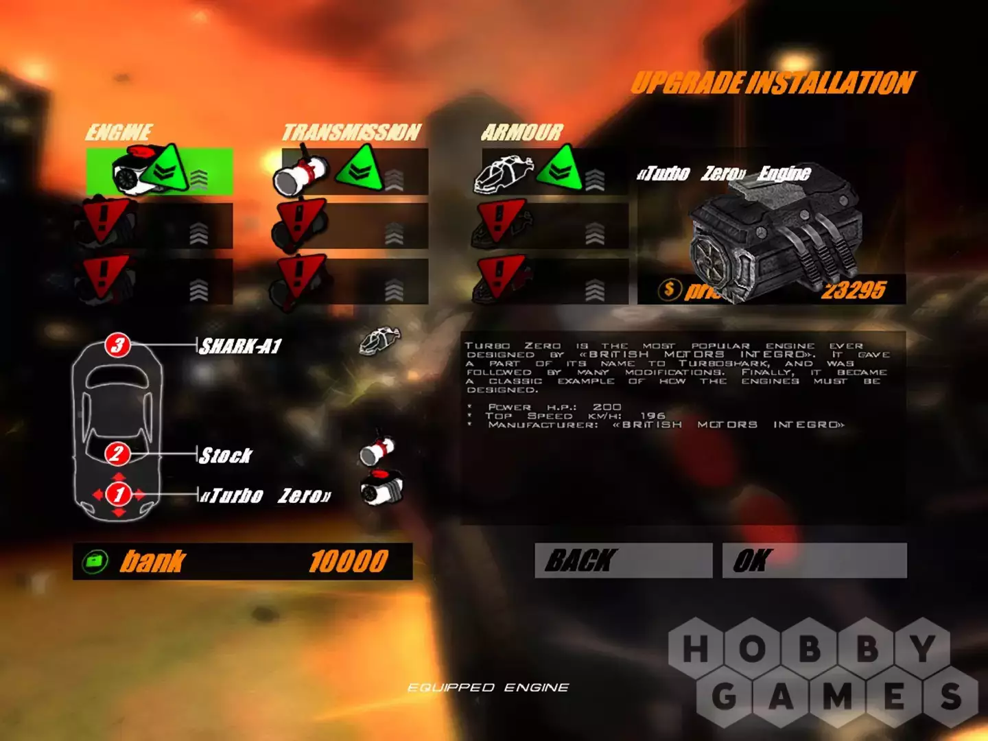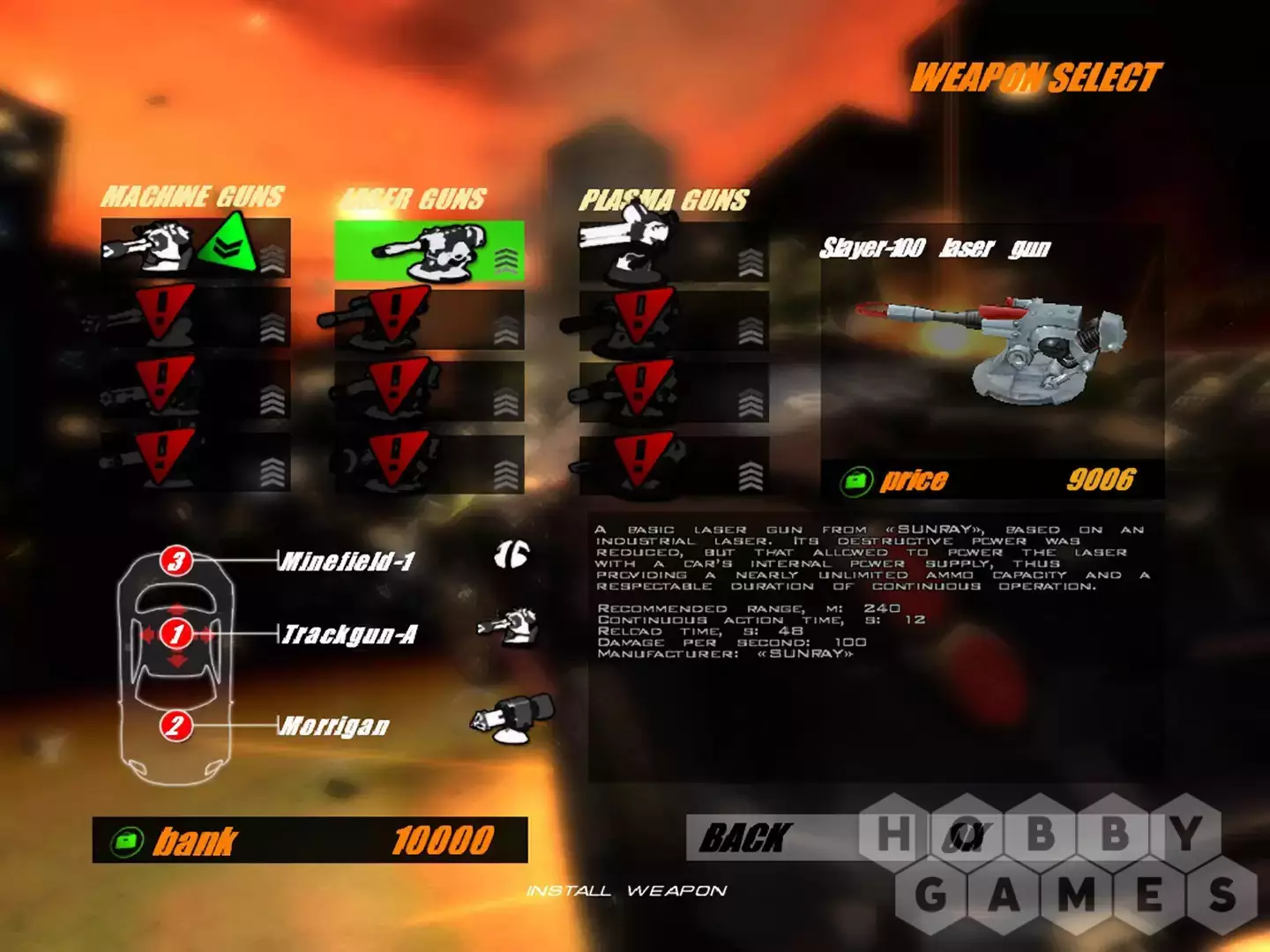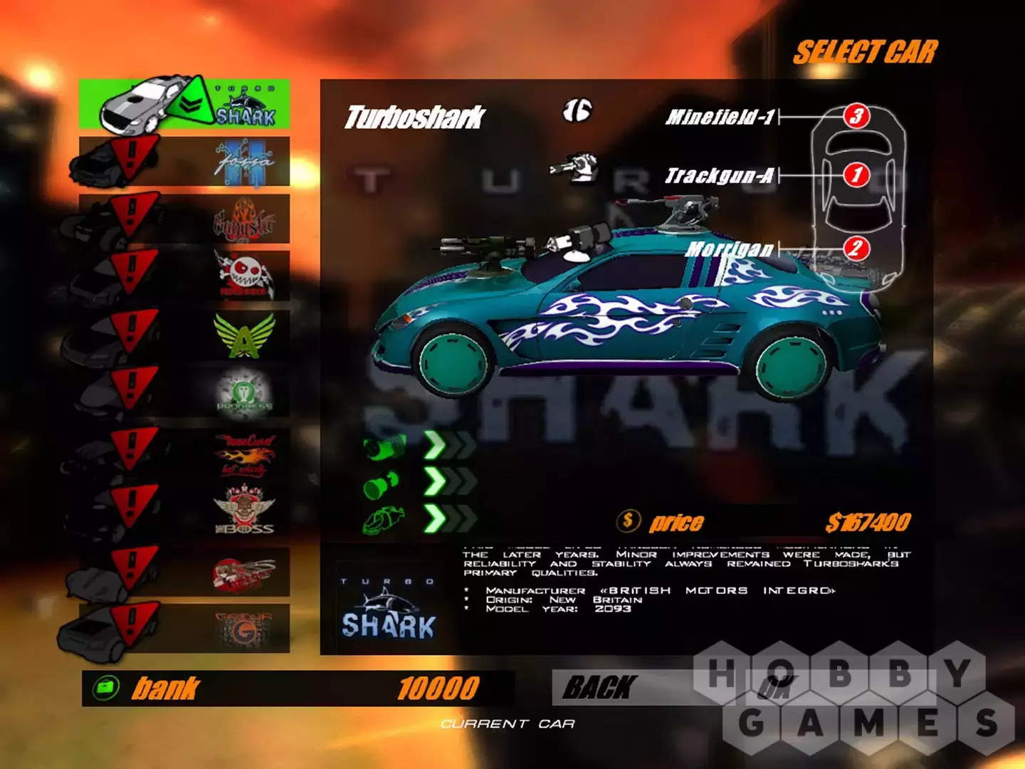 - 10 моделей мощных автомобилей с возможностью выбора оружия, модернизации и покраски.