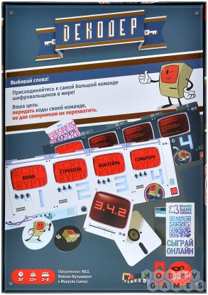 "Декодер. Юбилейное издание" – это увлекательная командная игра на разгадывание ассоциаций, где две команды дешифровщиков вступают в напряжённое противостояние. Особую ценность изданию придаёт не только дизайн, но и более 400 новых слов, которых хватит как для самостоятельного использования, так и для комбинирования с первой версией игры для бесконечного разнообразия. Вам и вашим сокомандникам предстоит не только расшифровать числовые коды, которые передаёт ваш капитан с помощью вербальных подсказок, но и параллельно вычислить кодовые слова противников. Победа ждёт тех, кто первым раскроет два вражеских шифра, однако два неверных решения на своём поле автоматически принесут победу оппонентам.