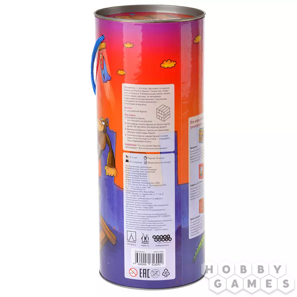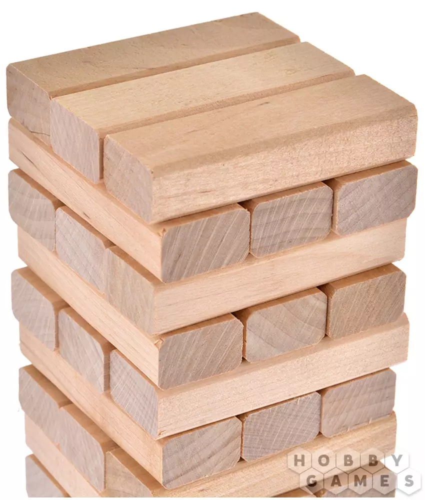 "Деревяшки" – это весёлая и простая игра, правила которой легко освоить за минуту, а играть в неё можно практически в любой компании. Аккуратно вытаскивать деревянные брусочки из многоэтажной конструкции, стараясь, чтобы она не развалилась, весело как в уютной семейной атмосфере, так и на лихой дружеской вечеринке. Азарту могут добавить и самостоятельно добавленные правила – например, можно тащить бруски только левой (а левшам – правой) рукой, или выпивать по рюмке после каждого успешного хода. Играть в "Деревяшки" можно практически любым составом – двух человек уже достаточно, а в больших компаниях драйва ещё больше. Скорее собирайте игроков и вперёд – но осторожнее, ведь башня легко может рухнуть!