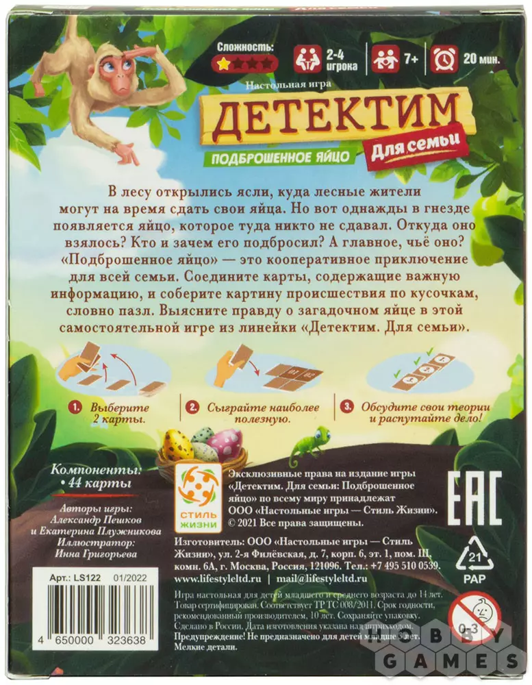В карточной детективной игре "Детектим для семьи: Подброшенное яйцо" игроки сообща будут составлять общую картину произошедшего: для этого им в прямом смысле слова нужно выложить из карт целостную картину. Но будет ли это так просто? Исследуйте территорию всей деревни и попробуйте докопаться до истины!