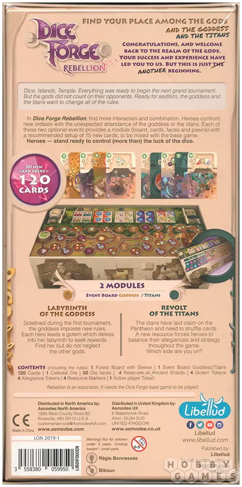 В этом дополнении к игре Dice Forge вас ждёт целая вселенная мифологических интриг. Rebellion сохраняет магию оригинальной механики, но в то же время привносит в неё новые слои стратегии. Теперь, собирая идеальный кубик, вы одновременно выбираете сторону в этом конфликте. А новые грани, реликвии и карты подвигов превратят каждую партию в уникальное противостояние, где ваши решения определяют судьбу пантеона.