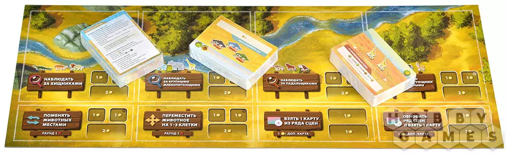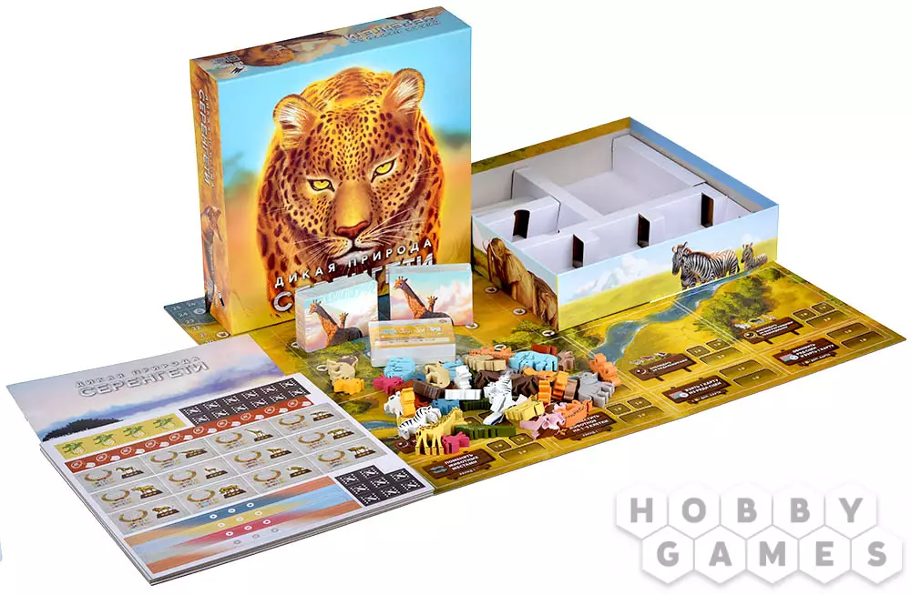 В настольной игре "Дикая природа Серенгети" вам предстоит стать режиссёром фильма о природе заповедника. Цель игры – заработать больше других очков престижа, снимая удачные сцены с животными. У вас будут карты этих самых сцен с положениями животных, при которых эта она может быть снята. В свой ход можно выставить на игровое поле новое животное, или переместить уже находящееся на нём. Однако добиться идеального кадра непросто: некоторые животные опасаются других, а какие-то и вовсе предпочитают конкретные места заповедника. Более того, каждый раунд будет происходить миграция животных, которая изменит их положение или вовсе уберёт с игрового поля. Старайтесь учитывать все факты и принимайте во внимание законы дикой природы, чтобы выставить удачный ракурс, снять как можно больше сцен и добиться признание мирового сообщества!