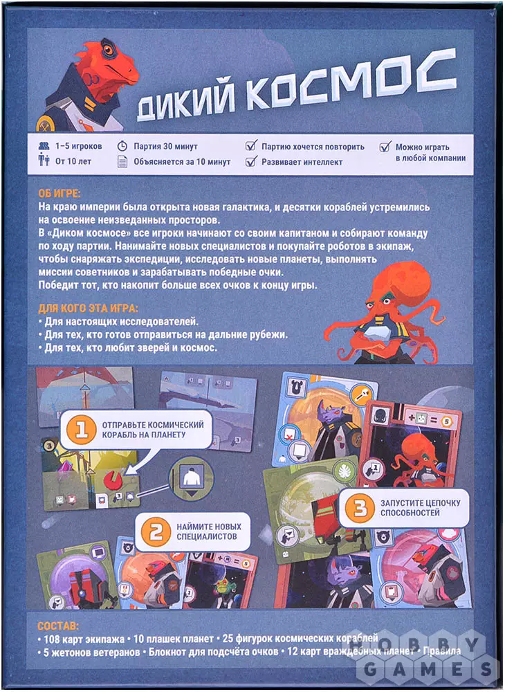 П16.02.2023 11:42Купил данную игру, посмотрев иностранный обзор на неё. Запомнилось описание ощущений от игры, которые сравнимы с крутыми комбинациями в игре "Хитрый ход", но с реализацией в крутом сеттинге (КОСМОС) и на карточном движке. Больше всего понравилось - огромнейшее количество вариантов для разных комбинаций карт, которые можно разыгра. А может сначала сыграть инженера, который позволяет пригласить в команду медведя-ветерана, из-за чего продвину жетон на треке ветеранов, а дальше этот эффект позволит разыграть карту... и крутишь-вертишь эти возможные комбинации в голове на протяжении 20-30 минут. С опытом игры приходит понимание, как круто можно взаимодействовать с оппонентами. Например - ты видишь, какой сет из животных собирает соперник и какие карты лежат на рынке. Главное, вовремя выбрать момент, чтобы обновить рынок и попытаться обрубить необходимые карты для другого игрока и понадеяться на нужные карты для себя. Игра ТОП!