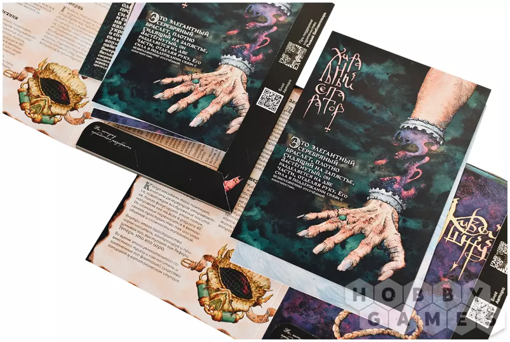 Представьте лавку древнего чудака-торговца, где на полке стоит скромный кусок мыла, способный отмыть не только грязь, но и дурную славу. Или пару поношенных сапог, в которых можно убежать... нет, не от врагов – от самого себя. А может, ваш взгляд упадёт на склянку со "спрей-эссенцией", превращающей пустоту под ногами в невидимый мост, – пшикните и шагайте смело. Всё это упаковано в стильную картонную папку, в которой каждая карточка – произведение искусства, каждая диковина – повод для незабываемой игровой сессии. Никаких сложных правил, только ваша фантазия и кубики!