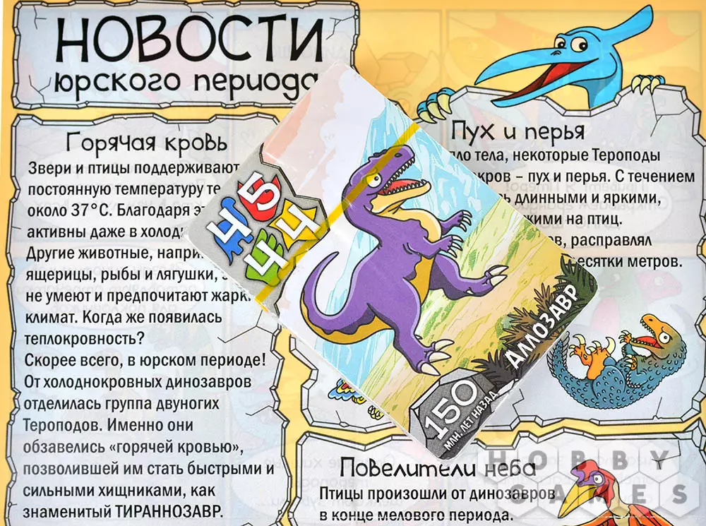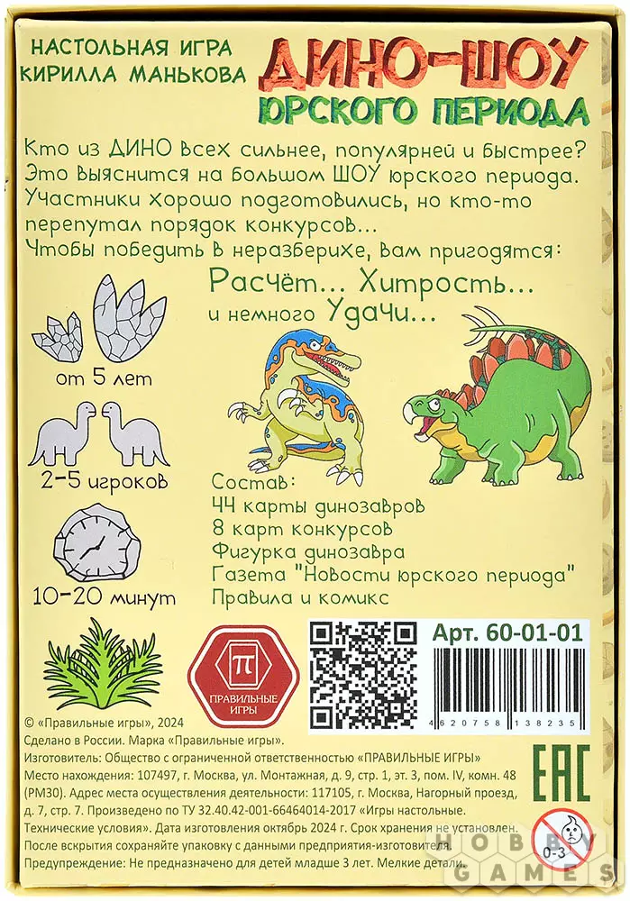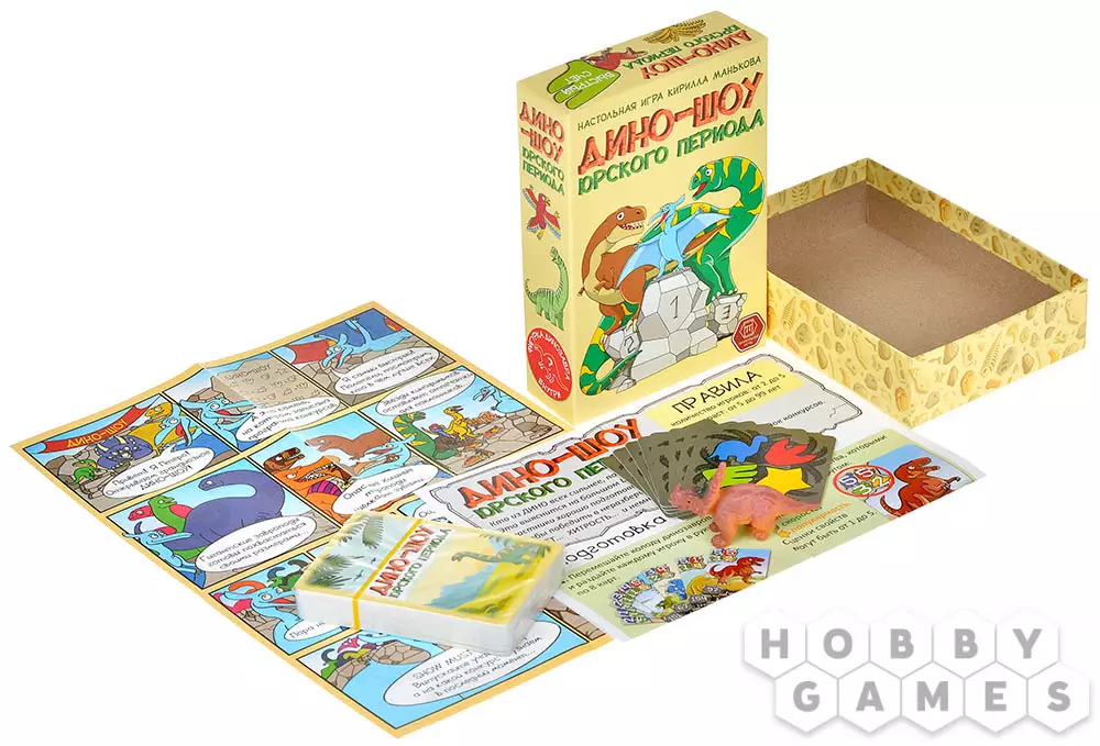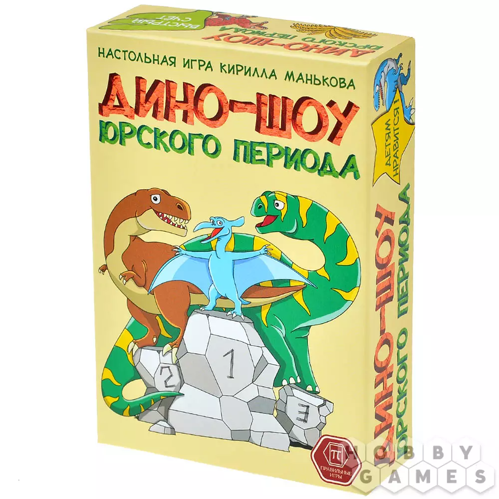 "Дино-шоу юрского периода" – это динамичная игра, которая сочетает в себе простые правила для детей и глубину стратегии для опытных игроков. Красочные карточки с забавными динозаврами сразу привлекают внимание, а элемент неожиданности в виде неизвестного конкурса делает каждую партию уникальной. Для победы вам придётся проявить смекалку: где-то выгодно сбросить слабую карту, чтобы сохранить сильных динозавров на финал, а где-то, наоборот, рискнуть и выставить чемпиона, надеясь, что соперники не догадаются о типе конкурса. А может, стоит сыграть "тёмную лошадку" – динозавра с равными характеристиками, который заставит противников гадать?