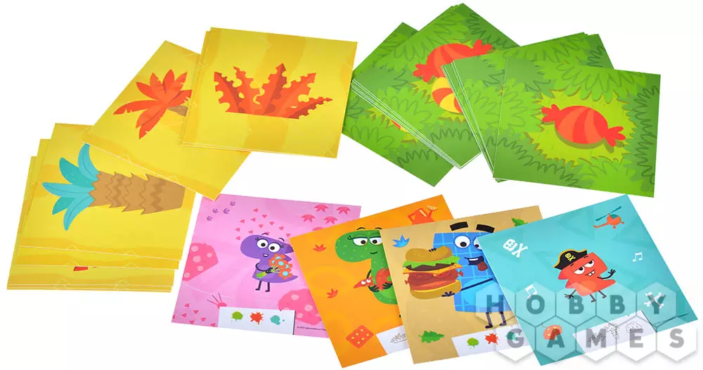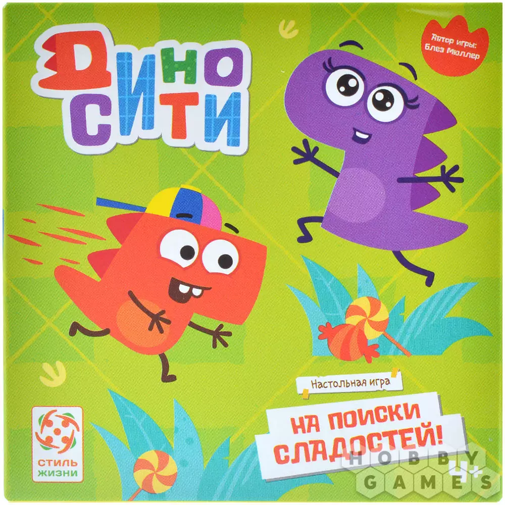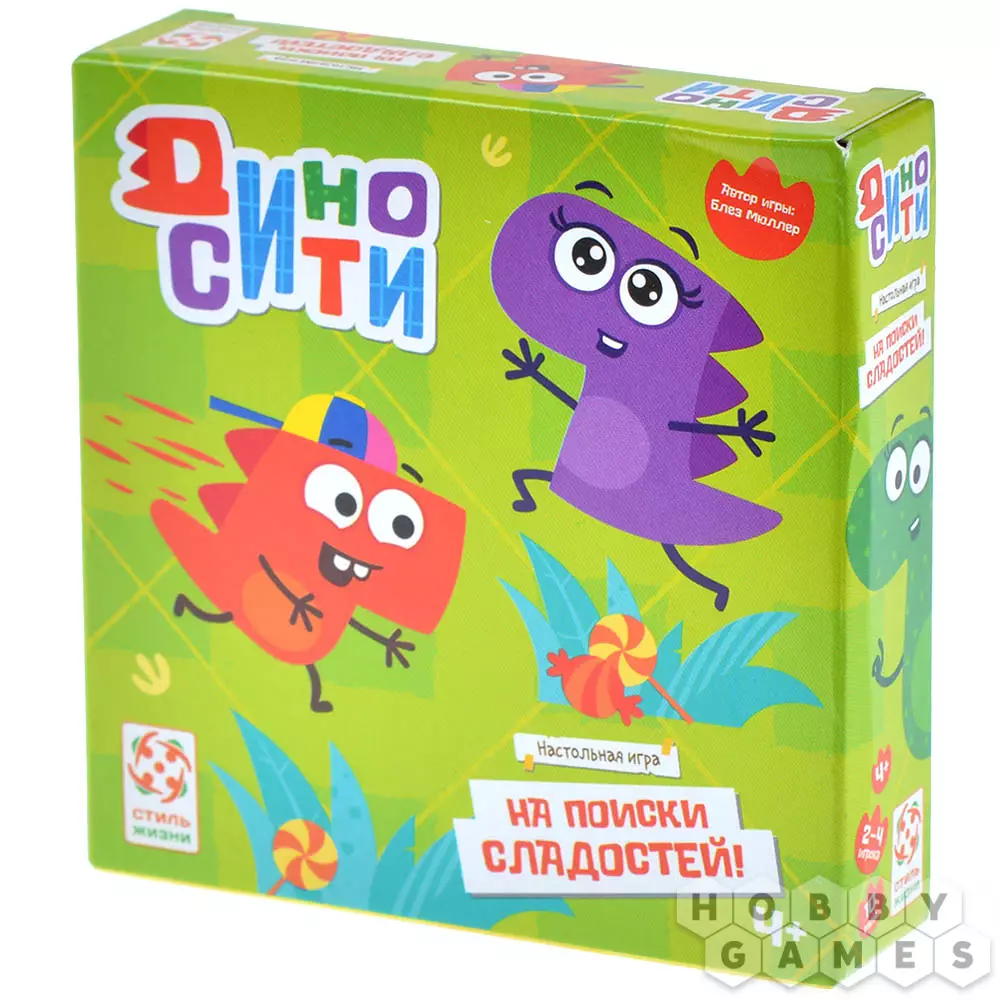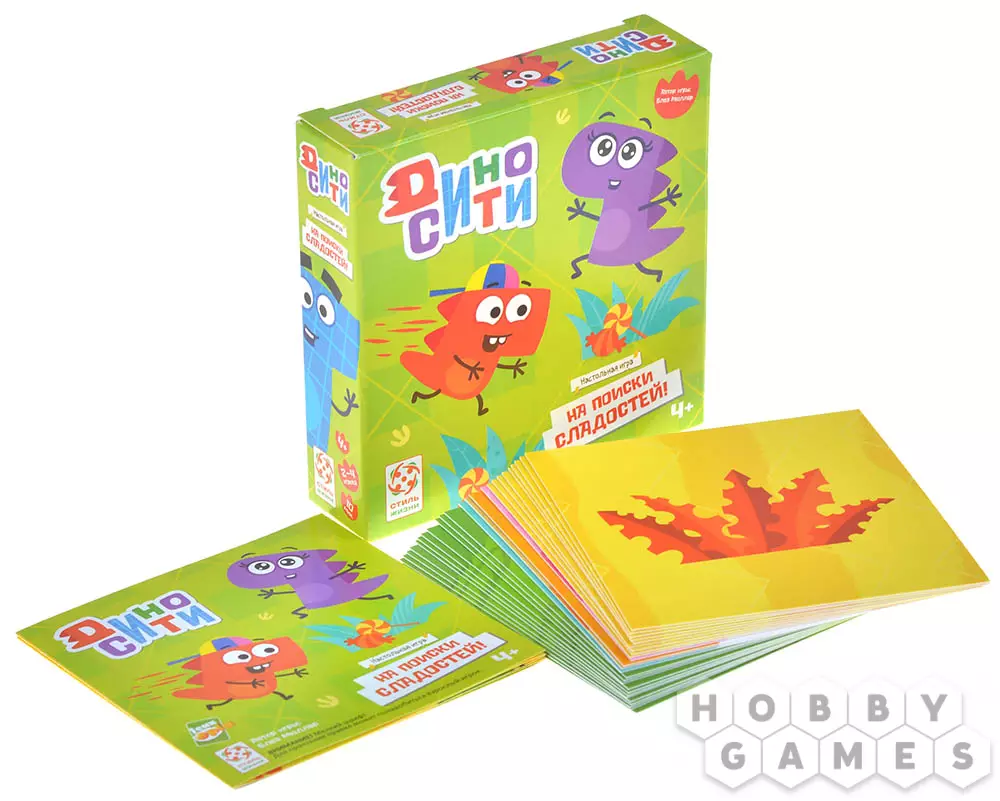 "Дино Сити: На поиски сладостей!" – это занимательная детская настольная игра на память с очень простыми правилами. Разложите карты леса в центре стола, чтобы получилась сетка поля размером 3x3. Затем с каждой стороны получившегося квадрата выложите по 3 карты конфет. Игроки кладут свою карту завра на одной из сторон получившегося поля и стараются пройти по прямой тропинке к противоположной стороне, чтобы получить карту конфеты. А сделать это можно только угадав, что изображено на обратной стороне карте леса. Угадали? Переходите к следующей карте. А если нет, то закройте карту, ход передаётся дальше. Запоминайте, что уже открывали! Так вам будет проще пройти по тропинке. Побеждает в игре тот сладкоежка, кто быстрее остальных соберёт 5 карт конфет.