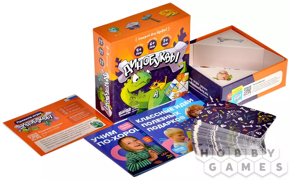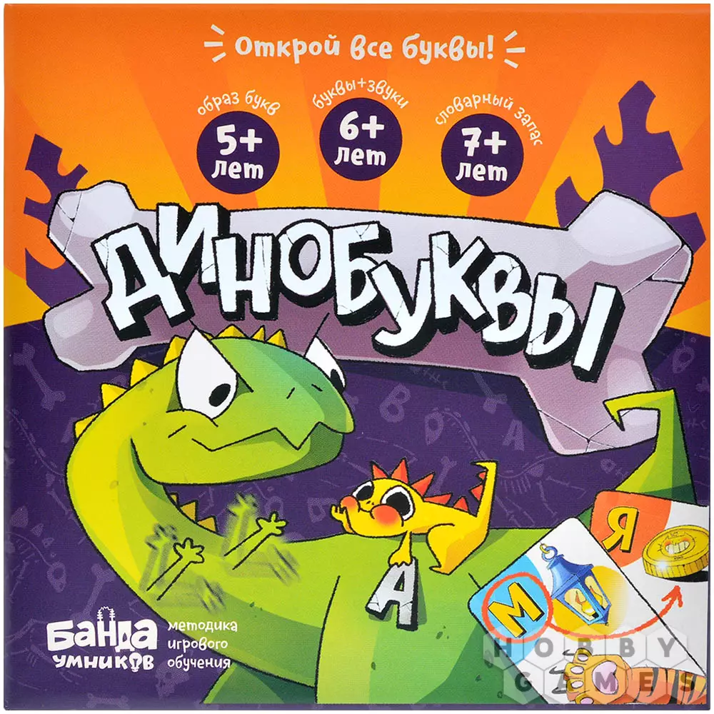 Динозавры и другие гигантские существа часто завораживают детские умы, поэтому тема выбрана как нельзя кстати. Настольная игра "Динобуквы" поможет ребёнку легко и весело узнать и выучить все буквы алфавита и кучу словечек доисторического мира!