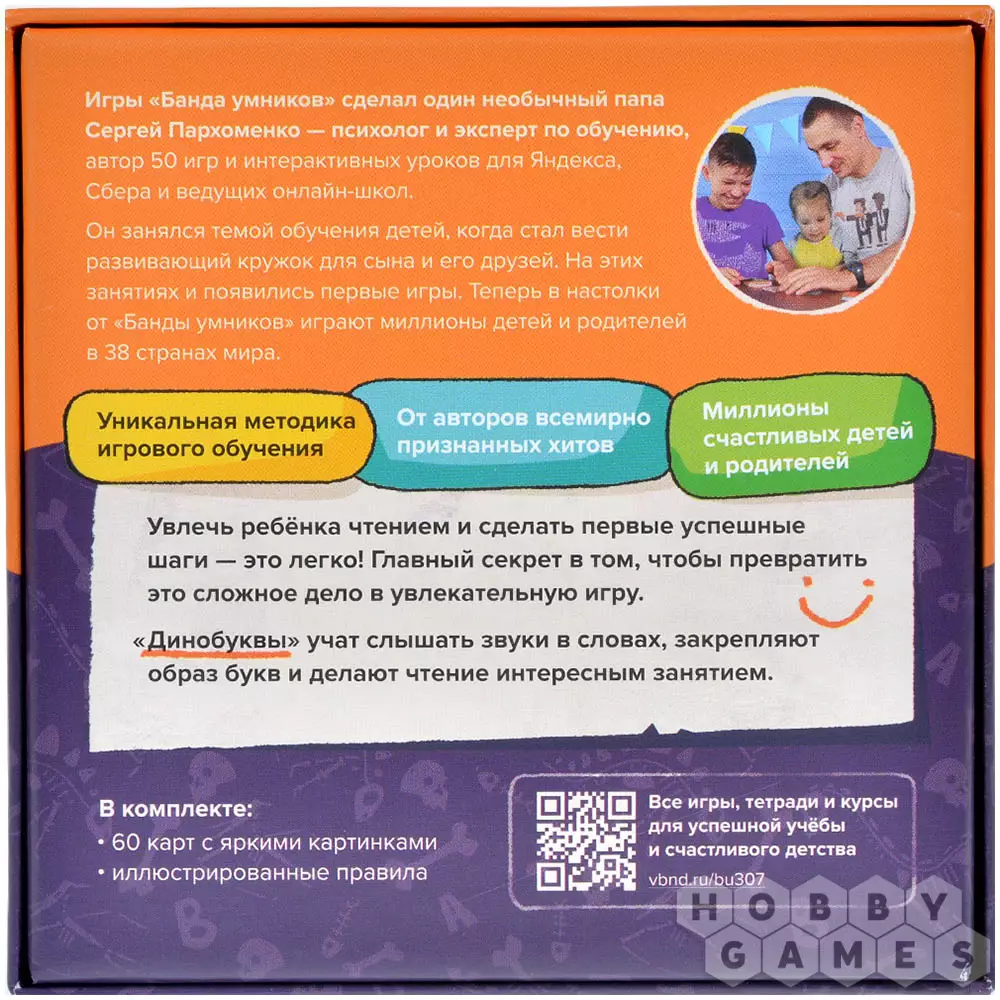 Игра предлагает три захватывающие развивающие игры для детей в одной коробке: "Цепочка эволюции", "Артефакты" и "Лото". В "Цепочке эволюции" ребёнок научится видеть связь между буквами и изображениями, закрепить связанные образы в своей голове. "Артефакты" станет отличной игрой для детей младшего возраста, которые ещё не умеют выстраивать длинные цепочки. Среди карт игроки ищут изображения, начинающееся на конкретную букву. А с "Лото" малыш сможет сделать первые шаги в знакомстве с буквами алфавита, запоминая их визуально!
