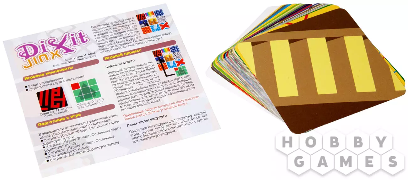 "Dixit Jinx/ Диксит Джинкс" – абсолютно новая версия всемирно известной игры "Диксит". На этот раз в ней нужно не только суметь отгадать картинку по ассоциациям другого человека, но и сделать это быстрее оппонентов. Для того, чтобы одержать победу, вам понадобится удачное сочетание логики, воображения, интуиции и быстрой реакции. Изюминка этой игры заключается в том, что изображённые на картах рисунки невозможно описать традиционным способом. Здесь не будет ни привычных животных, природных явлений, людей или других предметов, картинки абстрактны и порождают совершенно неожиданные ассоциации!