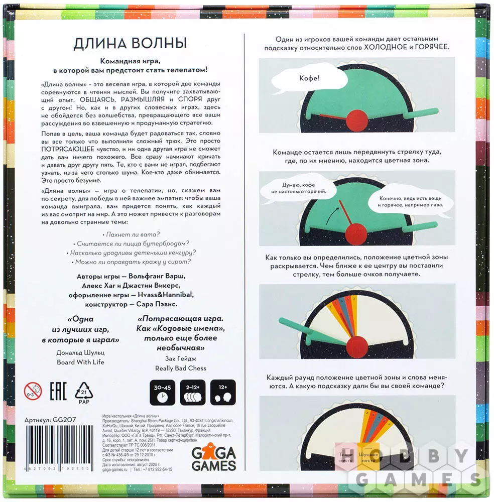 Вакушин21.04.2021 15:51Присоединяюсь к комплиментам в сторону компонентов! Игра из разряда "достал и играй", даже новички всё понимают за один раунд. Поначалу странные подсказки, правда, дают, зато быстро втягиваются.