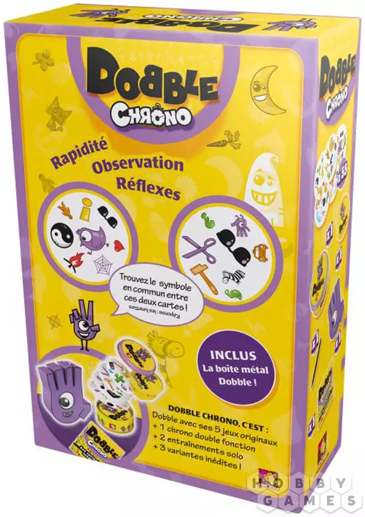 Dobble Chrono – это динамичная версия культовой игры Dobble ("Доббль"), дополненная таймером для ещё большего азарта. На круглых карточках – десятки символов: от животных до смайликов, и между любыми двумя картами всегда есть ровно одно совпадение. Ваша задача – быстрее всех обнаружить его и назвать, пока не закончилось время. В игре 10 разных режимов – от одиночных тренировок до шумных баталий с друзьями. Сможете ли вы побить рекорд или станете жертвой собственной невнимательности? Dobble Chrono – это вызов скорости, зоркости и умению побеждать под давлением времени!