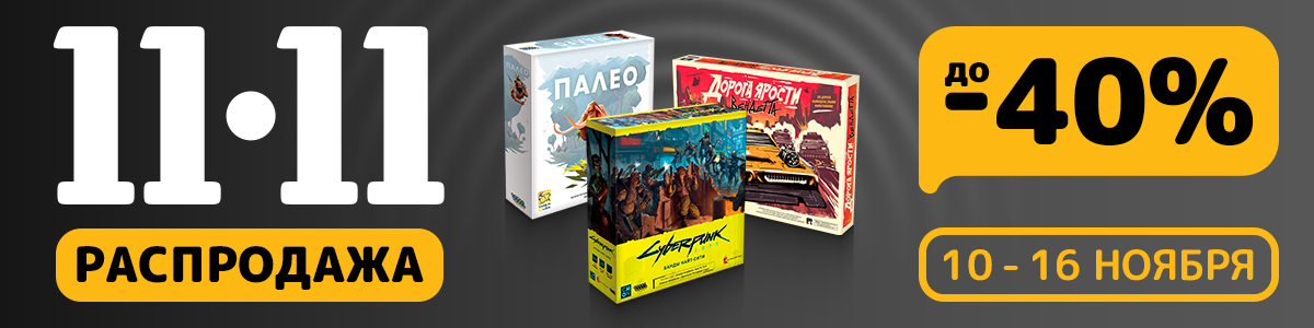 Осень – это время распродаж! Спешим поделиться отличной новостью: с 10 по 16 ноября вас ждут невероятные скидки от 15% до 40% на настольные игры от ведущих отечественных издателей – Hobby World, Magellan и Zvezda!