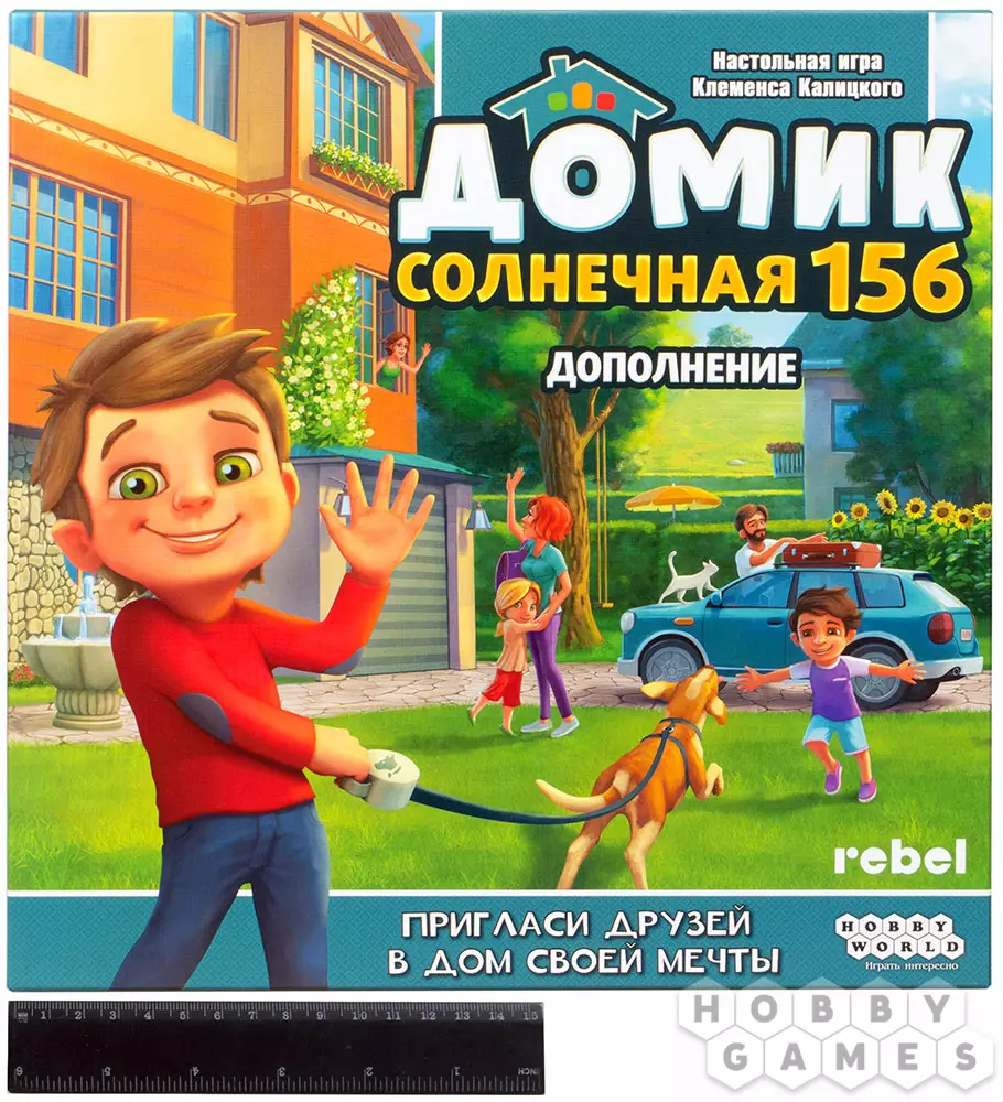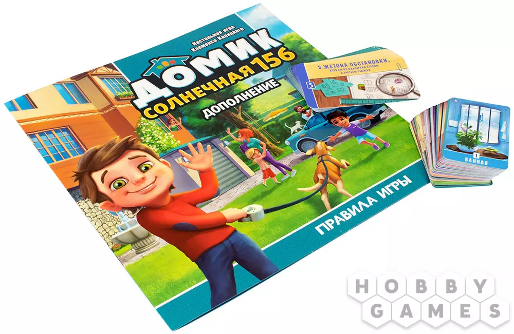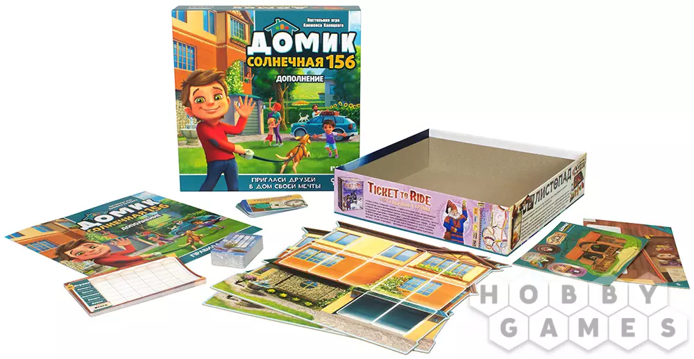 "Домик. Солнечная 156" – это дополнение для милой и уютной настольной игры, в котором игроки занимаются проектированием домиков своей мечты, а также их интерьером. Дополнение привносит много нового и интересного, позволяет играть большим количеством человек, добавляет новые карты и т. д.