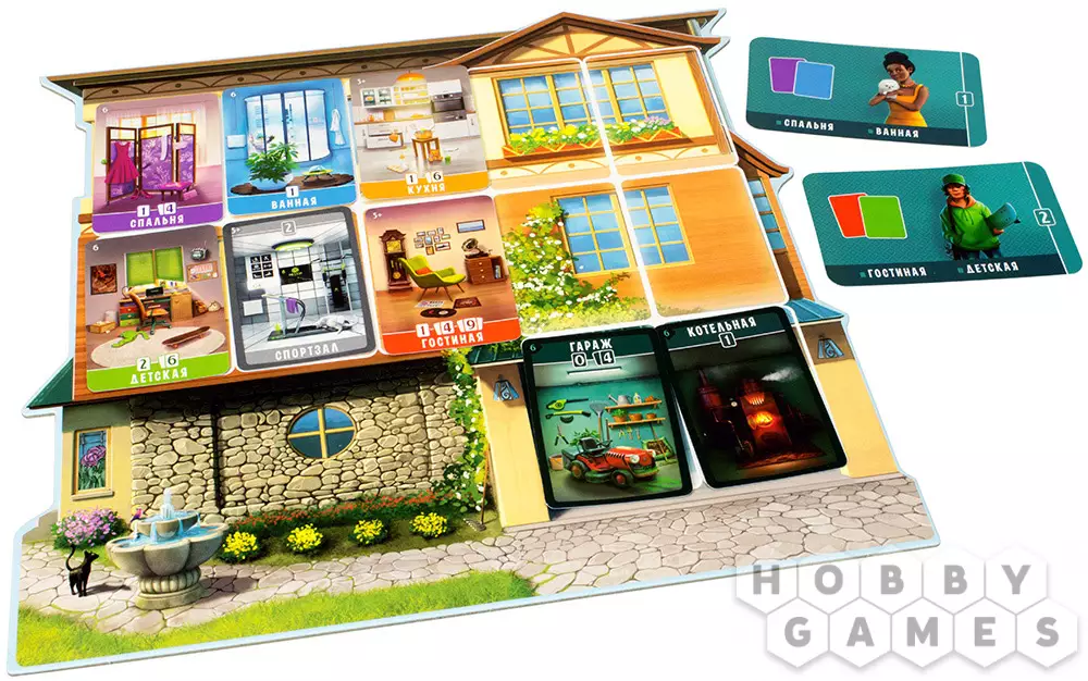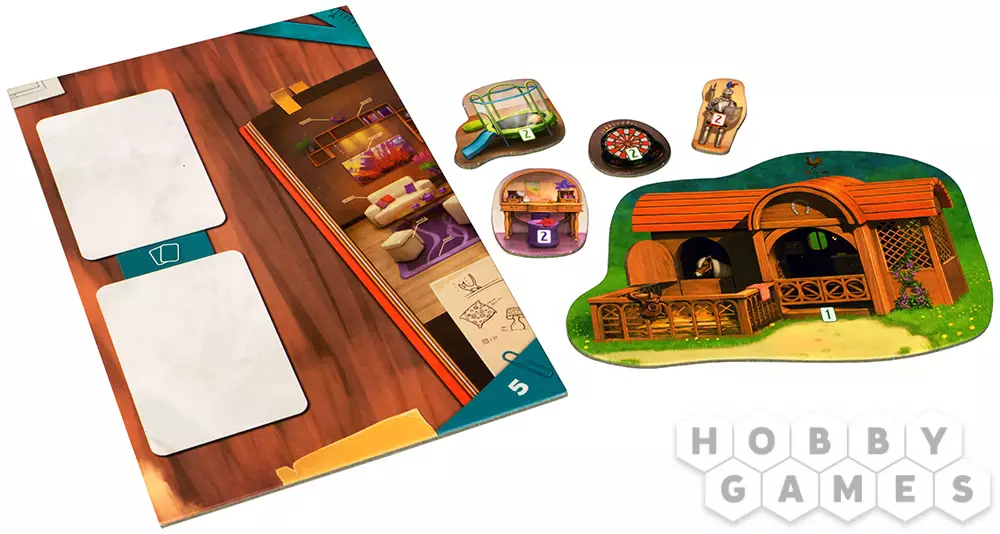 Перед игроками находится планшет с ячейками для карт в два ряда. В верхнем ряду лежат карты ресурсов, а в нижнем – карты комнат. Помимо этого, каждый игрок получает планшет с макетом дома. Дом состоит из трёх этажей и крыши. Ваша задача – построить дом своей мечты и заработать как можно больше победных очков. Делается это за счёт эффективного строительства комнат, расположения в них различных предметов интерьера и т. д.