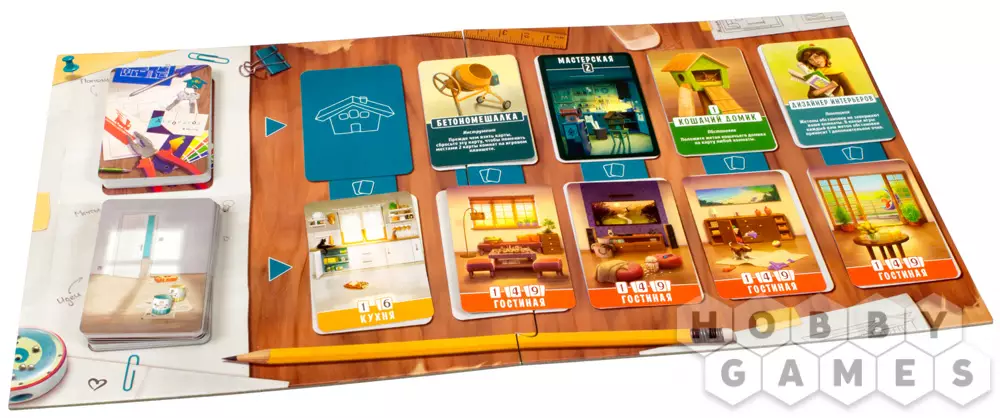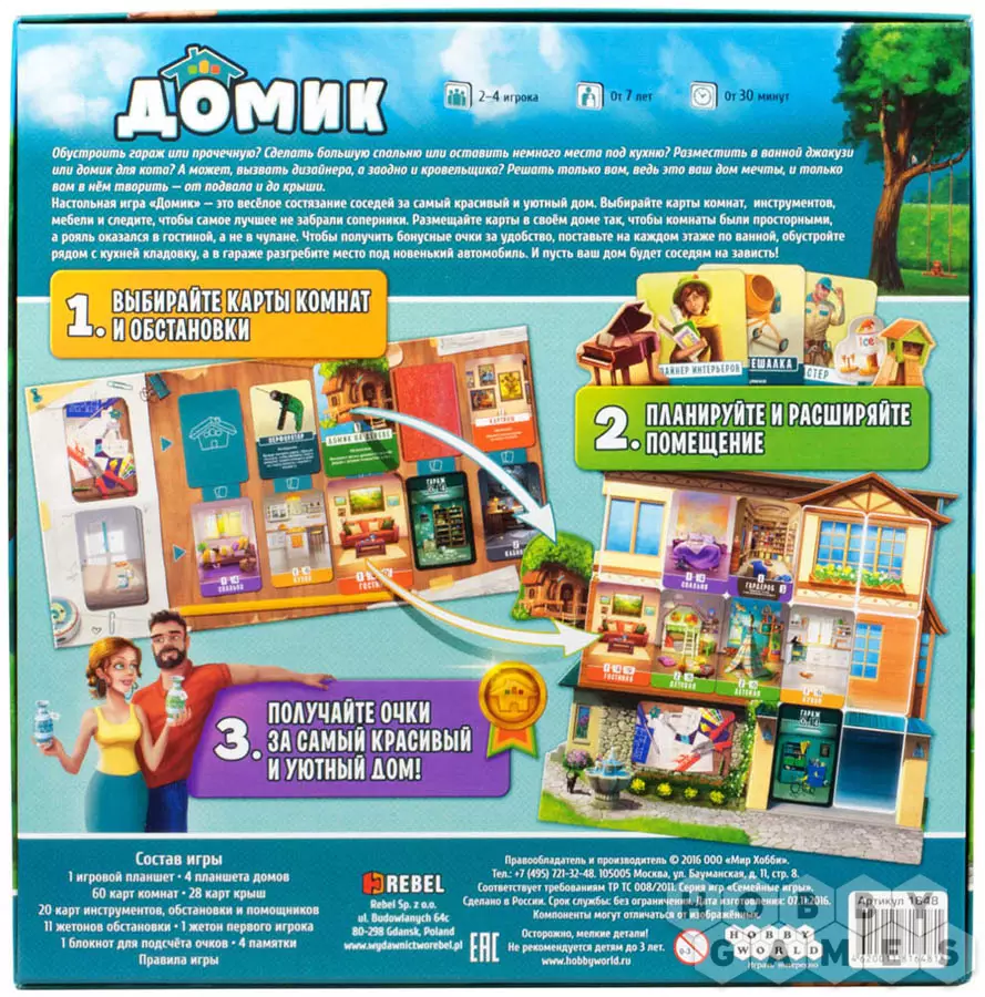 Сазонов16.04.2020 17:40Детская игра "Домик" отдает ностальгией по игре Sims. Максимально упрощенной, конечно же, но ведь в ней 90% все тратили именно на обустройство дома мечты! Итак, вы въезжаете в новый дом. Точнее, так: вы купили участок, у вас есть план дома и теперь необходимо решить, какие комнаты в нем будут. Повезло и вашим соседям (вашим компаньонам по игре) - они тоже в процессе осмысления своего дома. А дальше все довольно просто: есть "рынок" комнат и "рынок плюшек". Вы по очереди берете две карты из столбца РК-РП и строите. Если с комнатами все быстро становится ясно, то с "плюшками" нужно быть внимательными, ведь от них зависит ваша стратегия: цвет крыши, ассистенты на время ремонта и строительное оборудование. Все это поможет и в процессе и в окончании игры: перестроить, переложить или полностью поменять выбранные вами карты. Так же к комнатам идут предметы интерьера, которые приносят дополнительное очко. Прелесть игры в том, что невозможно строить комнаты в воздухе. Логика строительства от подвала до последнего этажа соблюдается неукоснительно. В игру интересно играть и детям и взрослым. Дети, умеющие читать, справляются без подсказок. Мы играем с детьми 4-х и 6-ти лет. Стабильно выигрывает младший... Одна партия занимает от силы полчаса. Очень красивая прорисовка всех карт и самих планшетов домиков! Очень рекомендуем!)