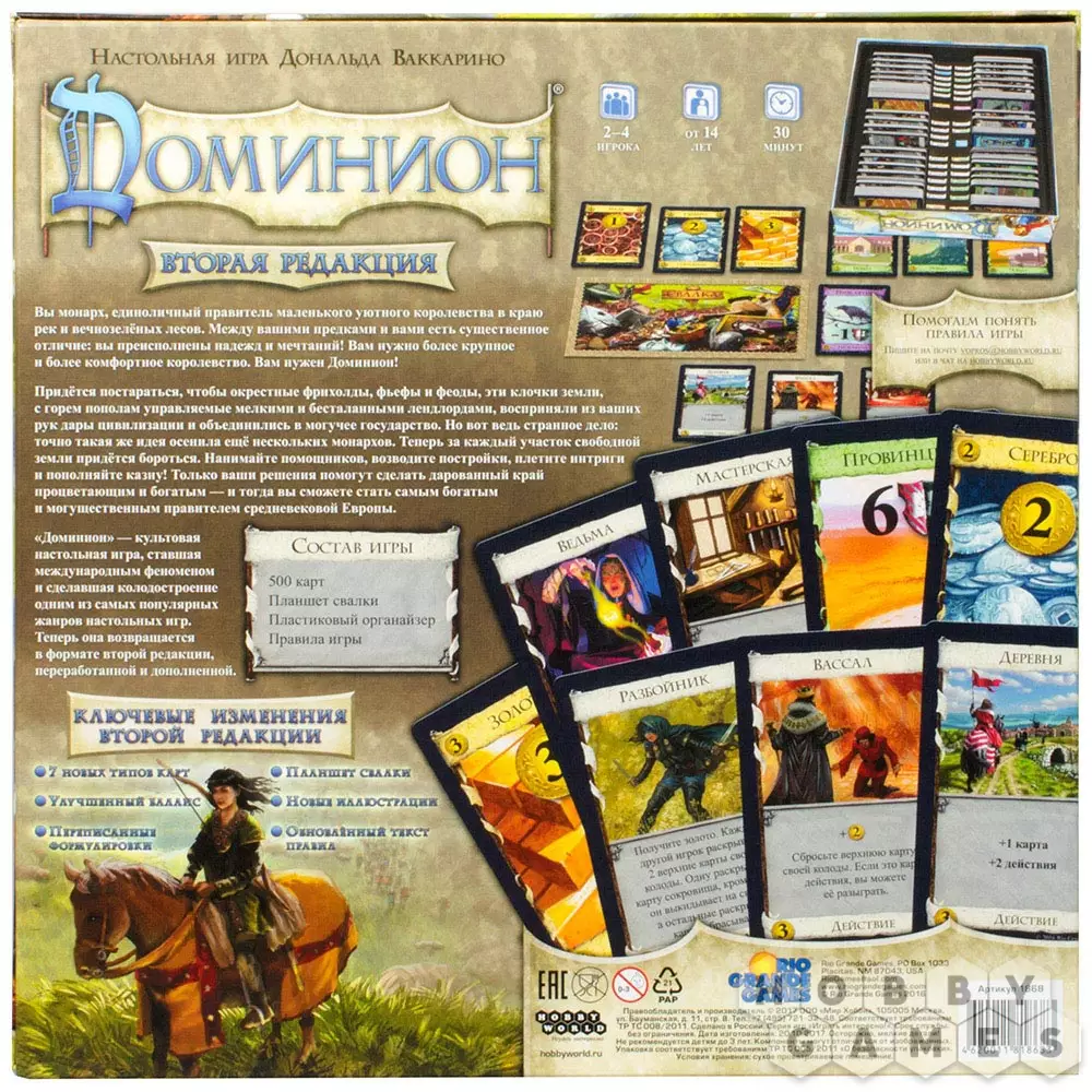 Игорь Игоревич29.05.2018 13:02Приятная колодостроительная игра для небольшой компании. Для большего разнообразия партий лучше сразу брать дополнение "Доминион: Интрига" и просить локализовать другие дополнения :-)