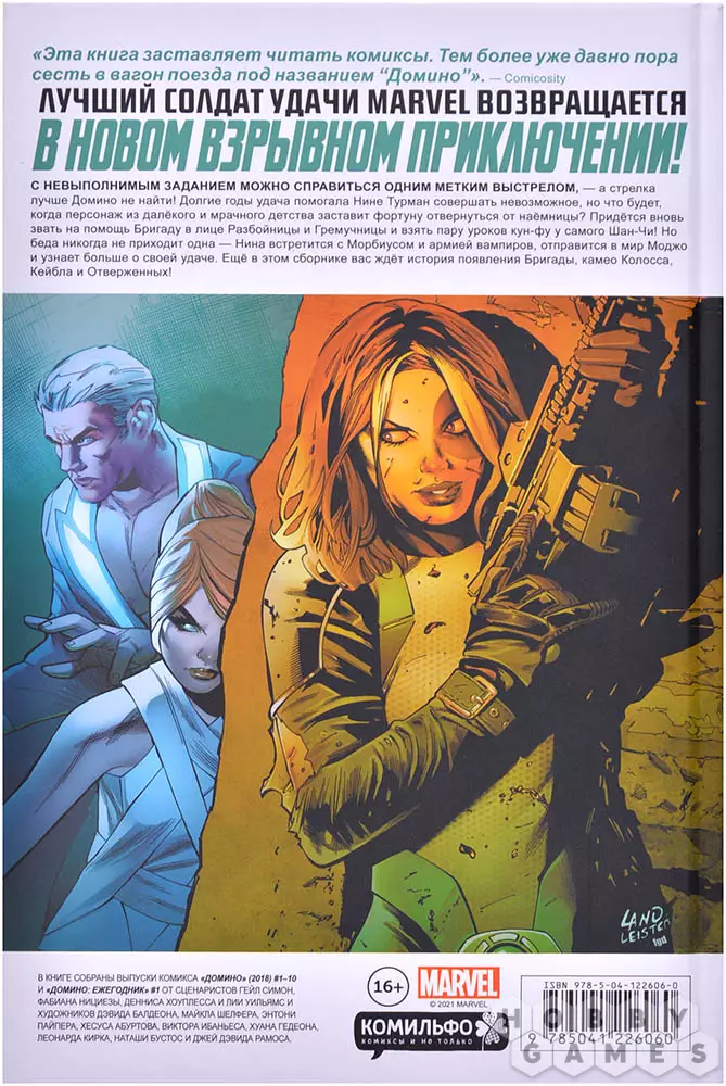 Нина Турман, известная как Домино, обладает нетривиальной суперспособностью – удача всегда на её стороне! Когда тебе благоволит Фортуна, вещи, что другим кажутся почти невозможными, становятся более чем реальными. Неудивительно, что Домино использует свой талант на все сто процентов, занимаясь наёмничеством.