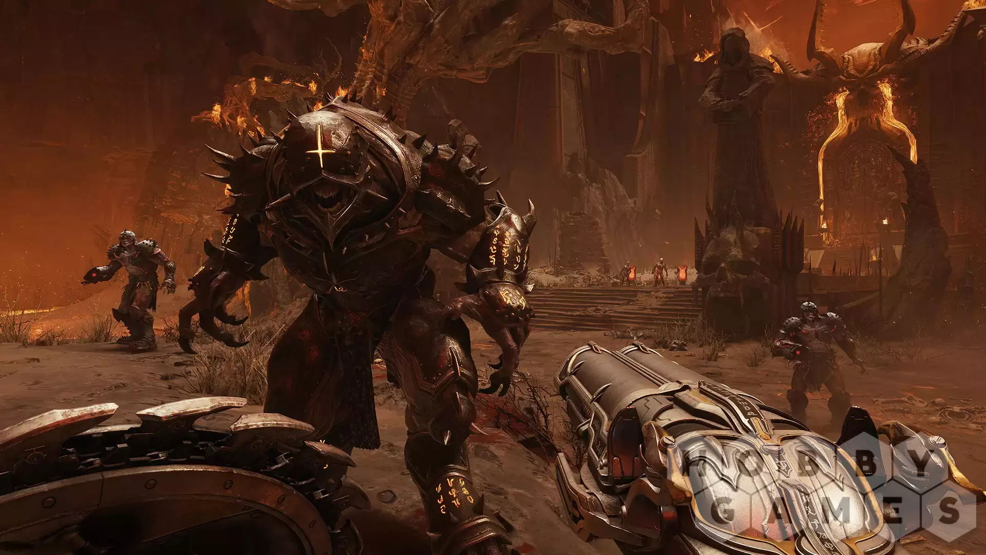 Чтобы сокрушить полчища ада, Палач должен обагрить кровью новые земли. Загадки, испытания и награды прячутся в тенистых уголках древних замков, на огромных полях сражений, в мрачных лесах, древних чертогах ада и иных мирах. Вооружившись мощным щитом-пилой, прорубите себе путь через тёмный мир тайн и опасностей, исследуя самые масштабные уровни в истории id.
