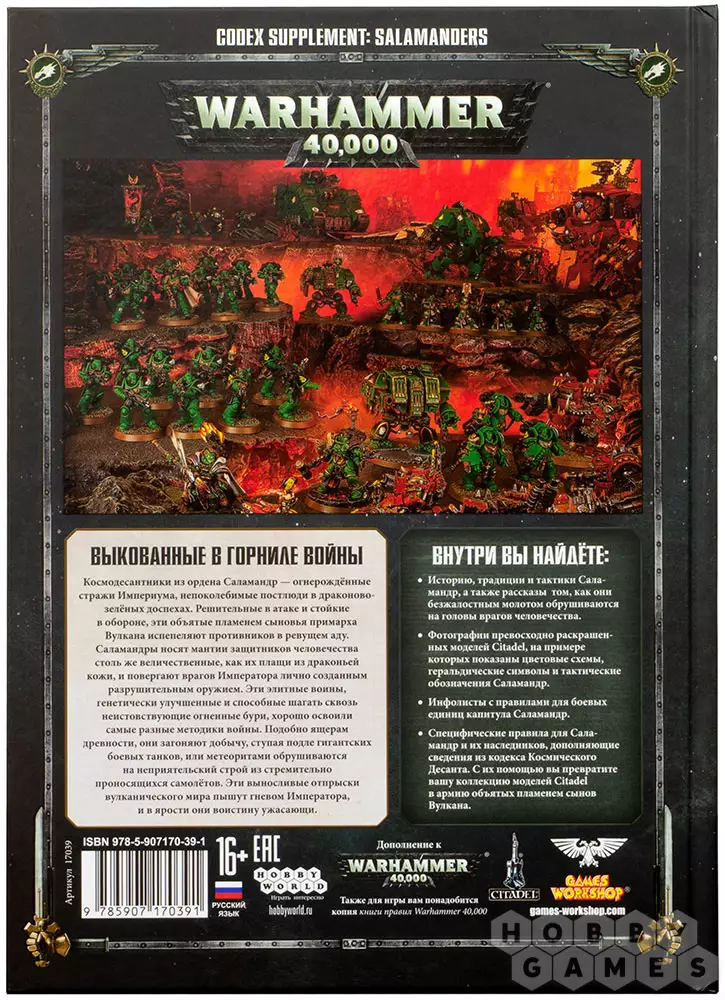 В этом приложении к кодексу Космического Десанта шестьдесят четыре страницы, на которых находится всё, что вам необходимо для раскрытия потенциала Саламандр в бою, а также захватывающие истории и иллюстрации, которые вдохновят вас на создание собственной коллекции.