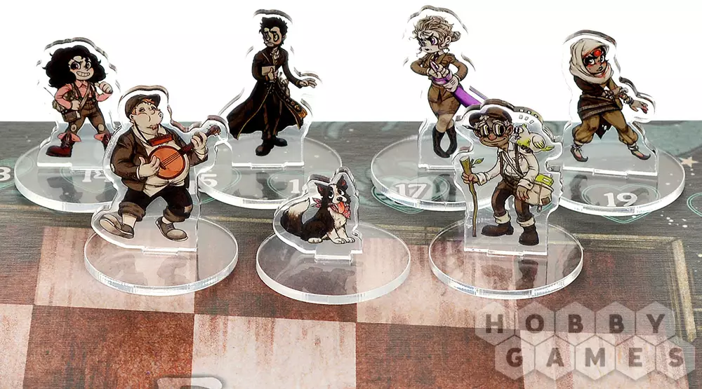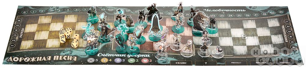 Перед тем как отправиться в путешествие, соберите своих бродяг – выберите их карты, поставьте фигурки на тёмное поле поезда и вручите каждому по три заветные монеты. Наполните старый узелок таинственными жетонами предметов – кто знает, что попадётся в дороге? Затем откройте книгу сценариев на первой истории – "Убежище от бури" – и расставьте призраков, объекты и жетоны событий так, как велит легенда.