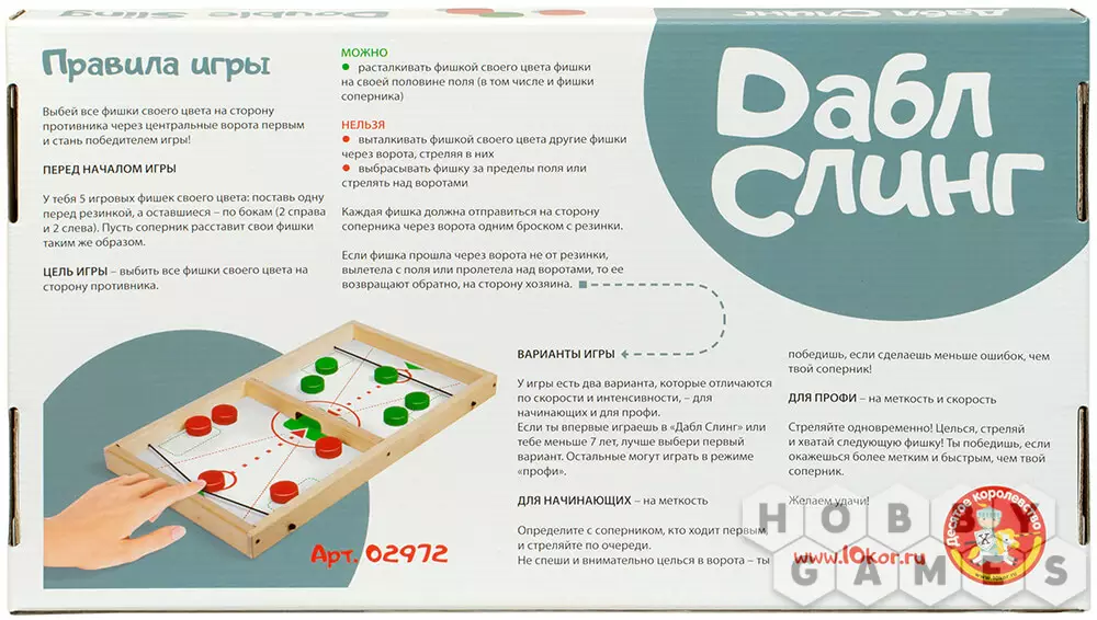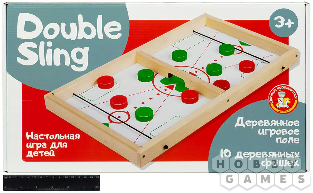 Double Sling – это состязательная спортивная игра, которая придётся по вкусу как совсем малышам, так и игрокам постарше. Суть игры в том, чтобы выбить все фишки своего цвета на сторону противника, используя для этого специальную резинку. Неопытные игроки ходят по очереди, а более искушённые могут стрелять фишками и одновременно. Double Sling не только помогает весело провести время, но и тренирует мелкую моторику рук, чему очень важно уделять внимание в юном возрасте.