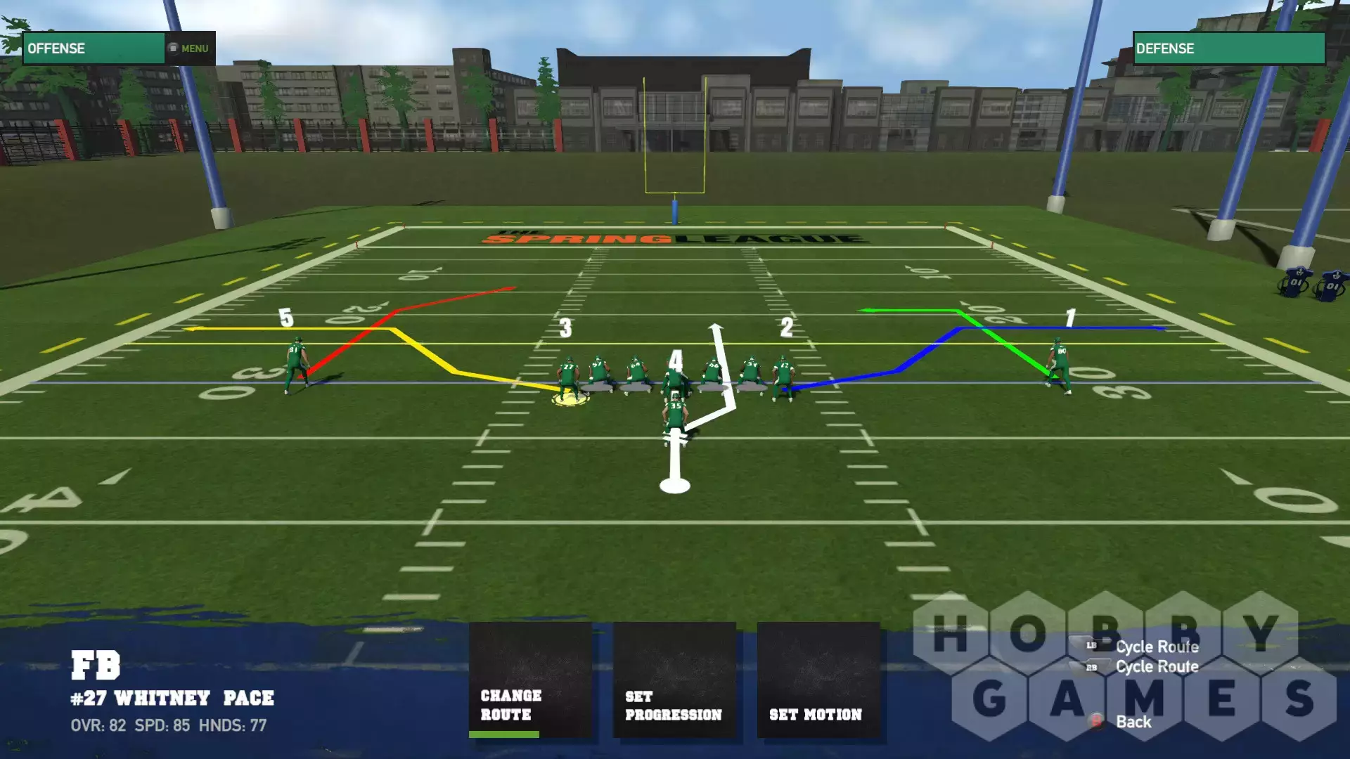 Play Designer – Full play designer for offense and defense. Implement standard playbook strategies with receiver route trees, read progressions, play action, run types, man and zone coverage, blitz packages, QB spy, and even set player motion.