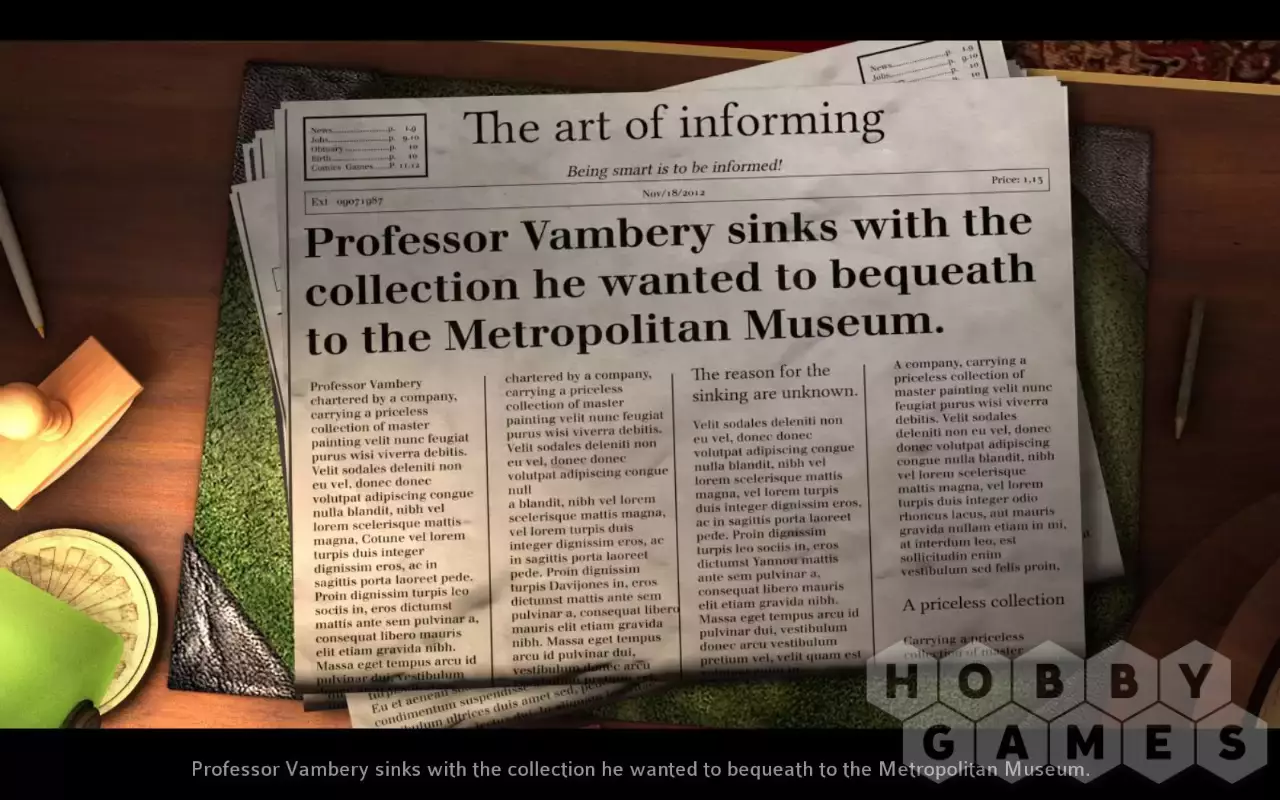 Грузовой корабль, перевозящий ценную коллекцию предметов искусства для Метрополитен-музея в Нью-Йорке, терпит кораблекрушение. Несколько месяцев спустя одна из картин обнаружена в Венгрии.