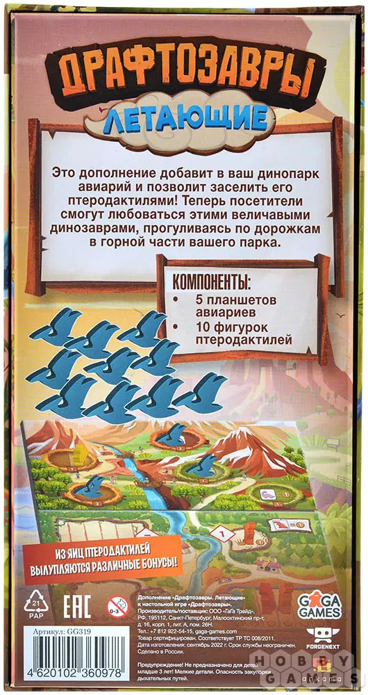 Дополнение "Драфтозавры: Летающие" увеличивает площадь вашего динопарка горными вершинами с новым видом вольеров, в которых вы сможете завести летающих динозавров – птеродактилей!