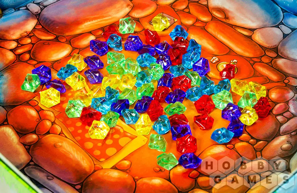 Каждый раунд начинается с выбора жетона камней одного из пяти цветов. Такой жетон даст вам право тащить все упавшие с башни самоцветы этого же цвета. И выбор этих жетонов начинается с игрока, сидящего слева от ведущего, которому предстоит снимать кольцо. Таким образом, ведущий обладает самым ненужным жетоном, так как будет делать свой выбор последним.