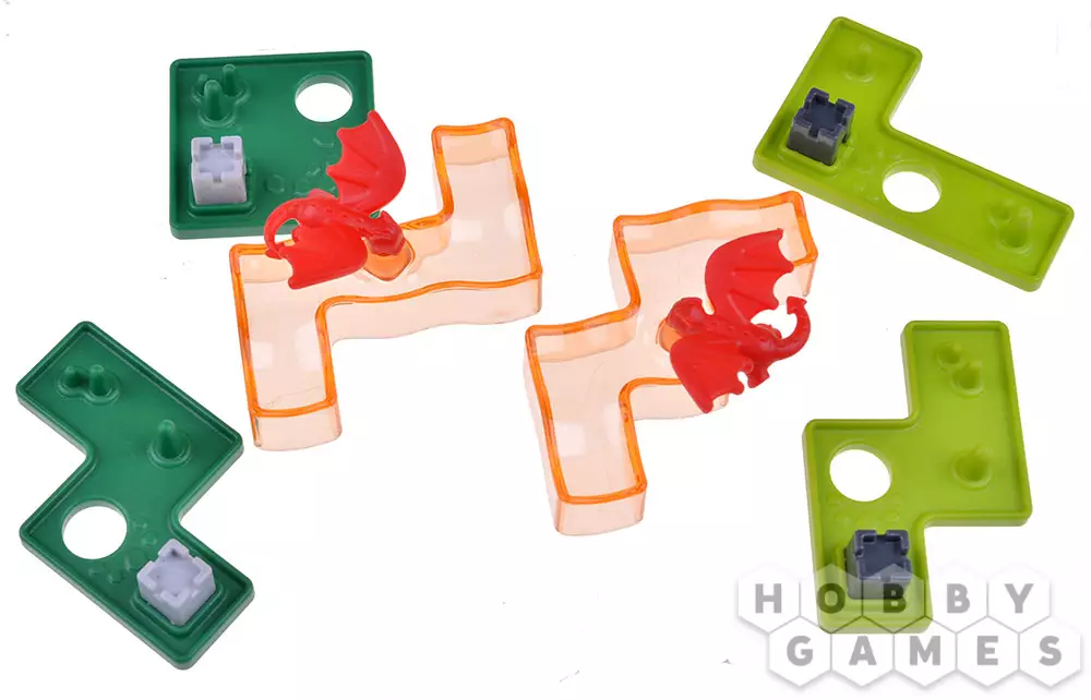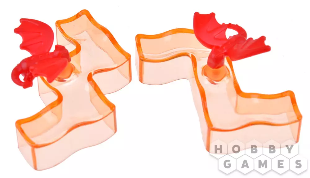 В настольной игре "Драконы Инферно" двум игрокам предстоит строить своё королевство на игровом поле из фигур различных форм. Во время строительства можно захватить участок земли, на котором находится драконье яйцо и получить огнедышащего дракона! Его вы выставляете на участок своего противника, таким образом сжигая часть его королевства – эти земли не будут учитываться при подсчёте победных очков в конце игры. Задача игроков сохранить как можно больше своих земель и сжечь земли противника.