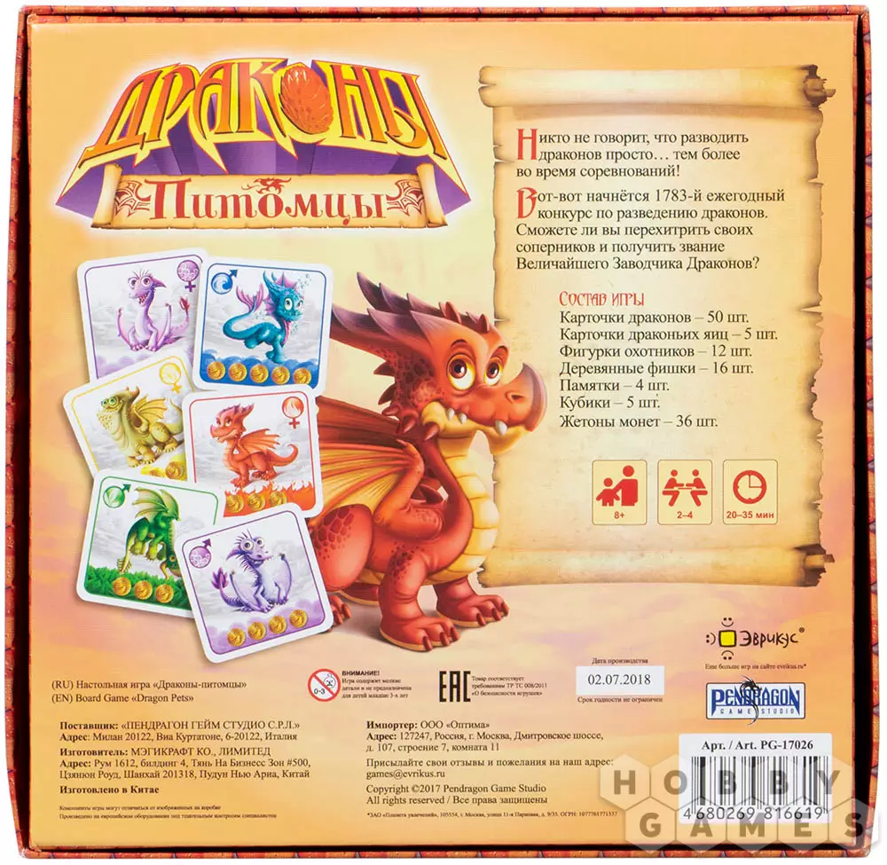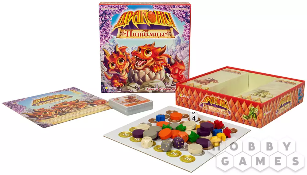 В настольной игре "Драконы-питомцы" вам предстоит иметь дело с их последней разновидностью – дружелюбными и весёлыми дракончиками. Их нужно будет разводить, чтобы победить на конкурсе драконьих заводчиков. Отправляйте охотников в лес за дикими ящерами, ищите пару для своих питомцев и зарабатывайте золотые монеты. В конце партии победит самый богатый заводчик дракончиков – кто же им станет?