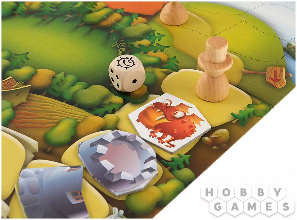 Итак, правила игры "Драконий остров" весьма просты: игроки по очереди бросают кубик и передвигают свою фишку по игровому полю на соответствующее число делений, собирая фрагменты замка. Как только фишка игрока прошла полный круг по полю, можно "построить" часть замка, выложив её на поле. Цель игры – как можно быстрее возвести целый замок, ведь, в свою очередь, дракоши не дремлют! Если на кубике выпадает символ дракона, один из малюток огнедышащих делает шаг вперёд, навстречу игрокам, создавая тем самым дополнительные трудности в дальнейшей постройке замка. Если кто-то из игроков повстречал на своём пути дракона, самый верный способ не попасть под его обжигающий огонь – спрятаться в ближайшем лесу. Правда, выйти оттуда и продолжить свой путь можно будет только в том случае, когда на кубике выпадет символ солнышка.