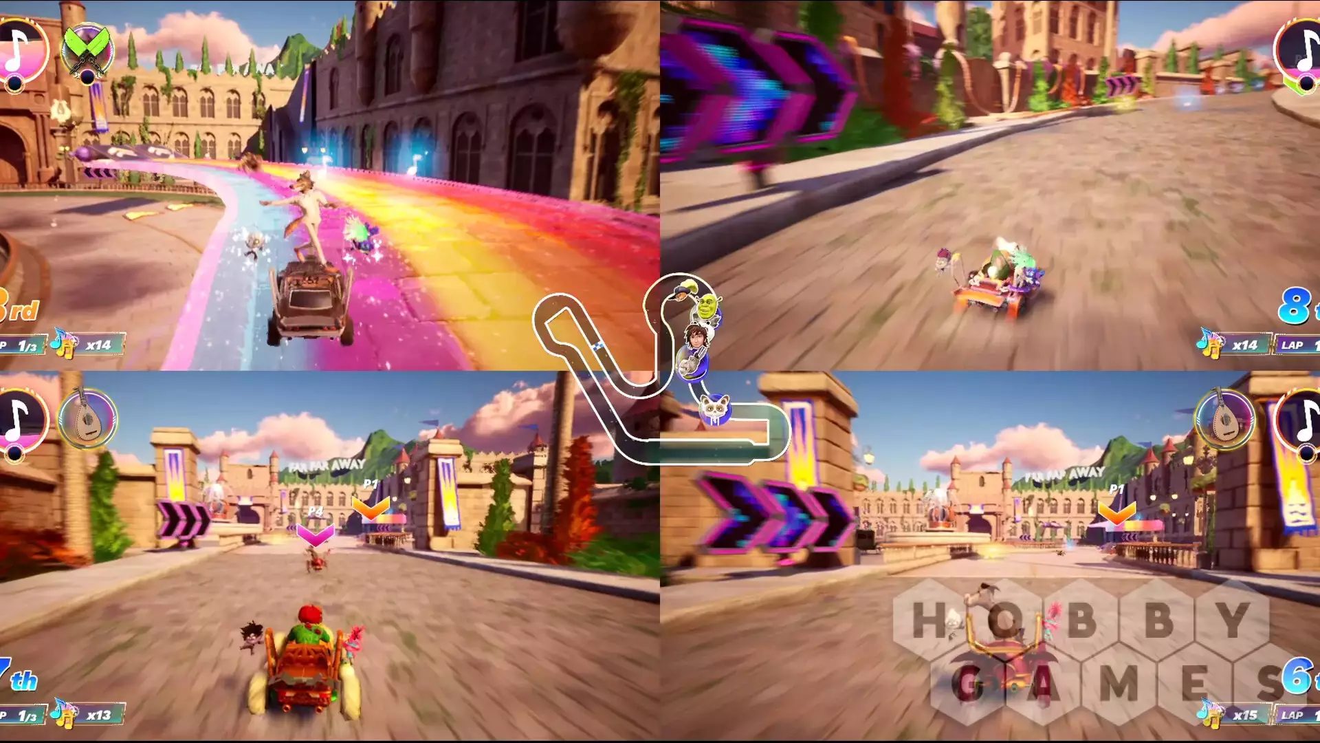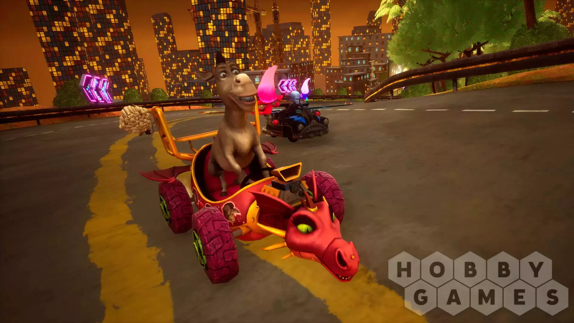 - ГОНЯЙТЕ ПО КУЛЬТОВЫМ ЛОКАЦИЯМ: перенеситесь в фантастические миры, разгоняясь, прыгая и дрифтуя на трассах, вдохновленных любимыми мультфильмами DreamWorks: Далекое-Далекое королевство из «Шрека», Бергентаун из «Троллей», корпорация «ПесиКо» из «Босса-молокососа», зоопарк Нью-Йорка из «Мадагаскара» и другие!
