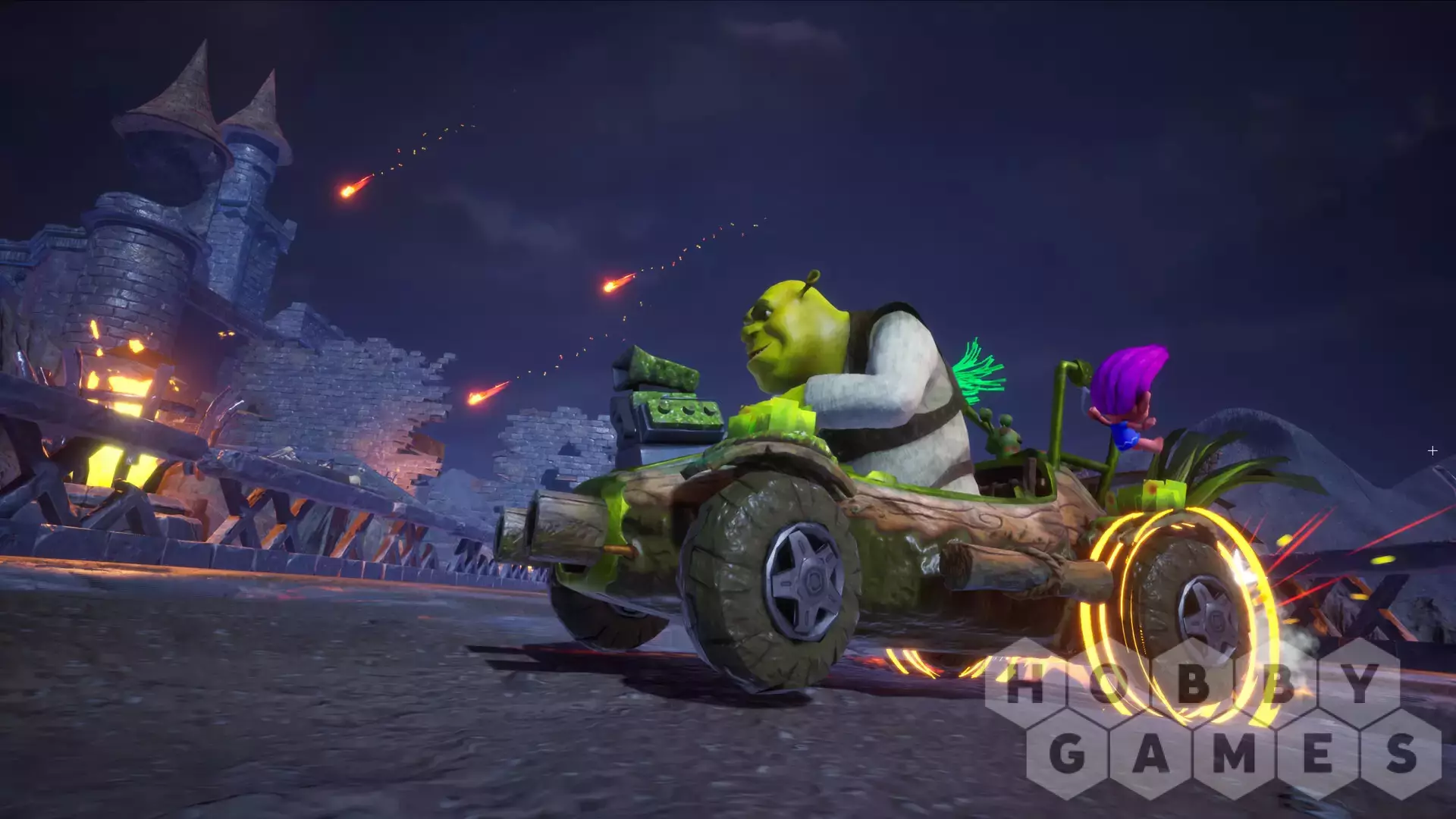 Звездный состав ваших любимых персонажей DreamWorks добавит к скоростным гонкам на картах еще больше веселья, чем когда-либо! Соревнуйтесь на 20 различных тематических трассах DreamWorks, таких как болото Шрека, зоопарк Нью-Йорка из Мадагаскара, остров Олух и другие! 20 самых популярных персонажей DreamWorks: Шрек, По, Тигрица, Кот в сапогах, Иккинг, Астрид, Босс-молокосос и другие популярные герои собрались для участия в неповторимых гонках.