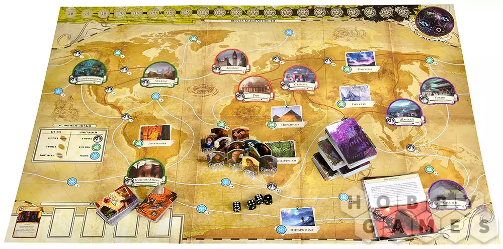 Эпическая настольная игра "Древний Ужас" создана специально для любителей серии "Ужаса Аркхэма", а также фанатов мистики и произведений Лавкрафта. Игра окунёт Вас в мрачную атмосферу, где каждый Ваш шаг влияет на будущее всего мира. Вы сможете путешествовать по всему земному шару, попытаться расшифровать тайные послания и победить потусторонних тварей. Игра имеет несколько уровней сложности и подойдёт как заинтересовавшимся новичкам, так и бывалым сыщикам. А каждый из Древних имеет уникальную колоду с загадками и свои характеристики. Сможете ли Вы теперь безмятежно спать по ночам, зная, что Древний Ужас почти проснулся?