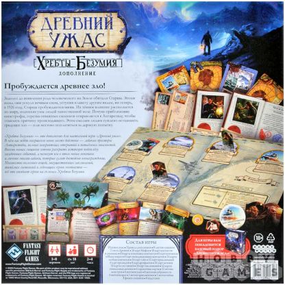 "Хребты Безумия" – это новое дополнение к настольной мистической игре "Древний ужас", которое отправляет игроков в Антарктику по следам исследовательской экспедиции Мискатоникского университета. Дополнение, его сеттинг и сюжет взяты из одноимённого романа Говарда Лавкрафта.