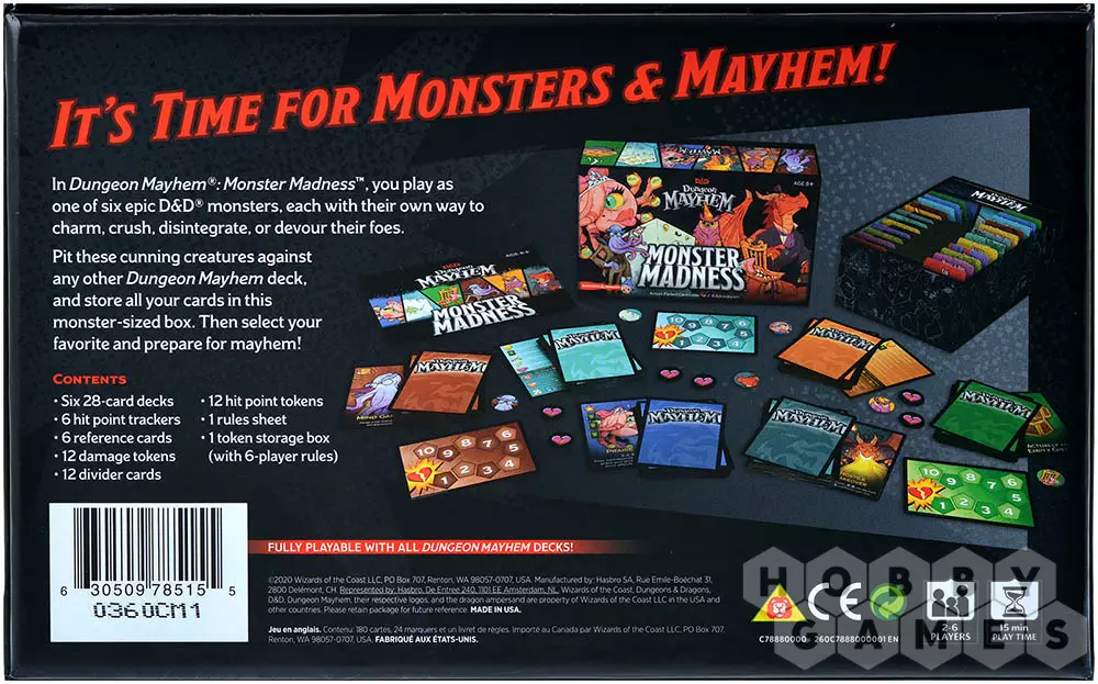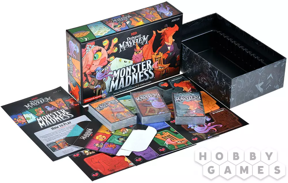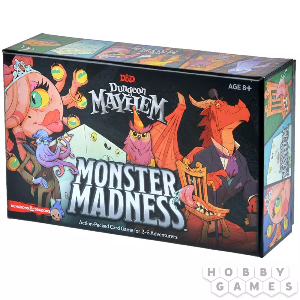 Dungeons & Dragons. Dungeon Mayhem: Monster Madness – это динамичная карточная игра, в которой игроки возьмут на себя роль известных монстров из мира "Подземелий и драконов", и вступят в эпическую битву! Очаровывайте, крушите, испаряйте и пожирайте своих врагов – каждый монстр имеет собственный стиль игры и навыки, так что смелее!