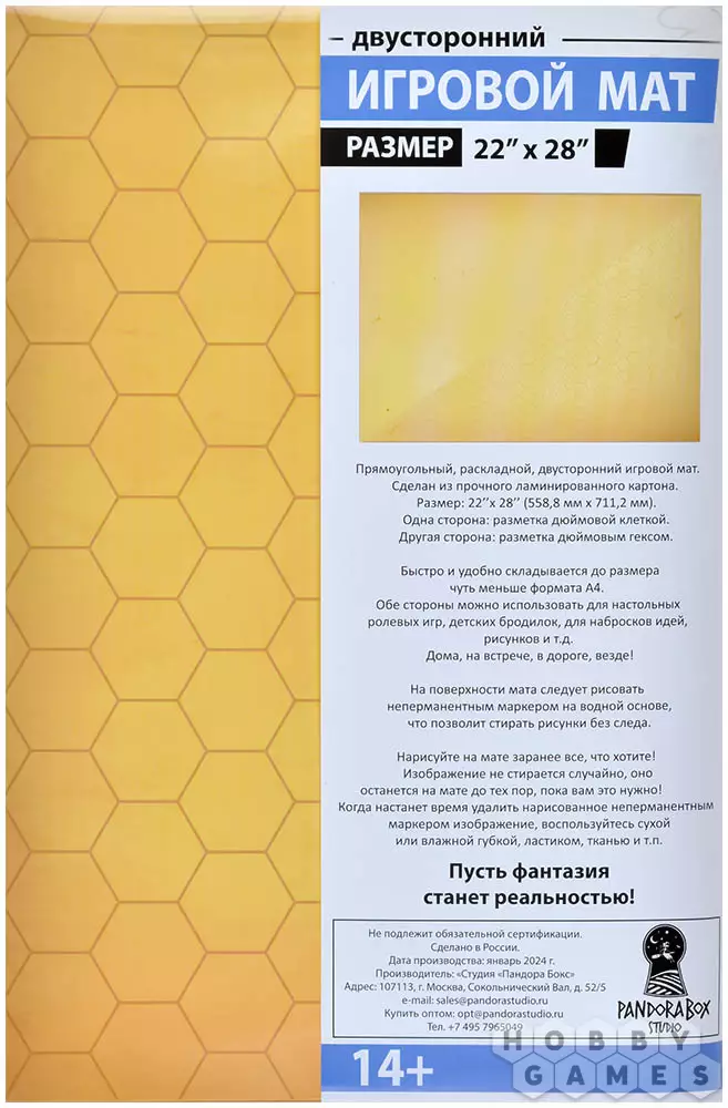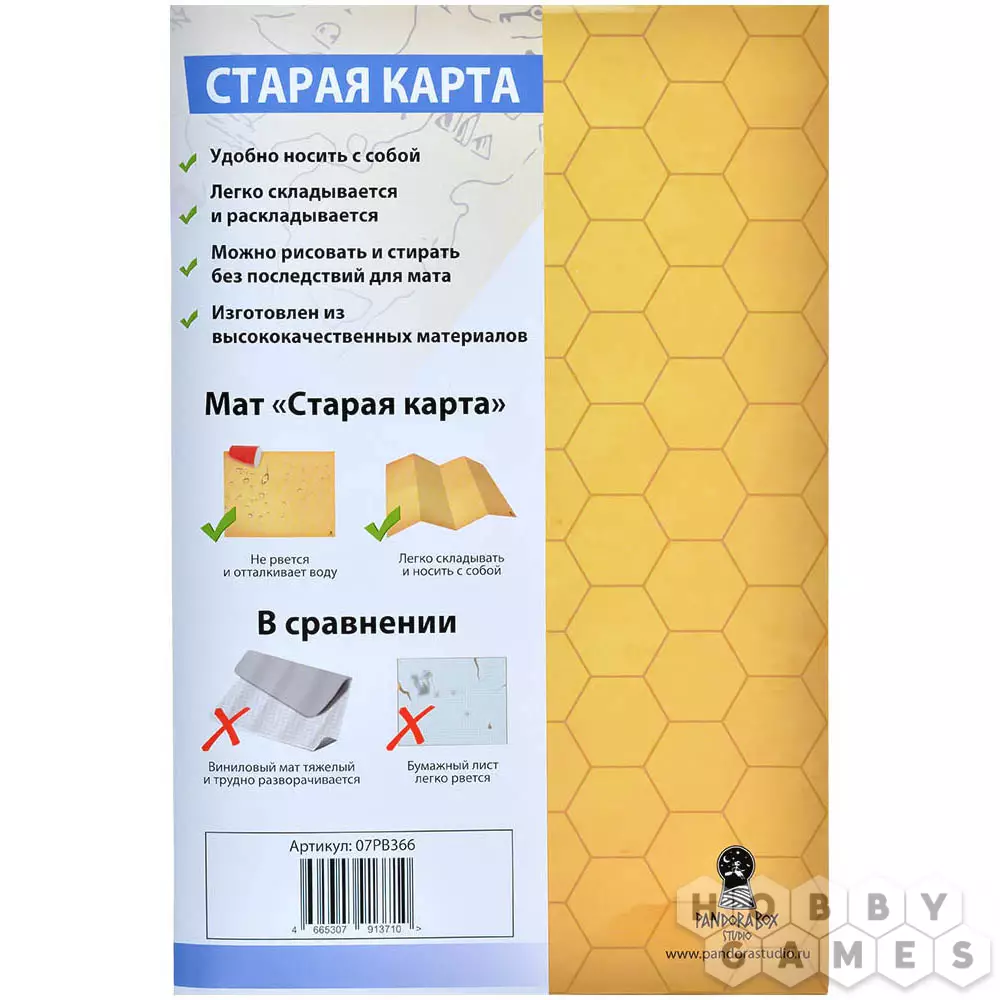 Этот игровой мат – отличное приспособление для настольных ролевых игр. Деталей ландшафта всегда будет недостаточно, и неплохой выход из этой ситуации – игровое поле, на котором можно нарисовать всё необходимое. Двухсторонняя ламинация мата не только защищает его от воздействия воды или грязи, но и позволяет бесследно стирать нарисованные неперманентным маркером схемы ландшафта. Для удобства транспортировки его легко сложить до формата А4. На одной стороне мата нанесены гексы, а на другой – сетка. Это очень удобно и повышает области использования данного мата.