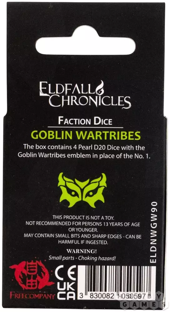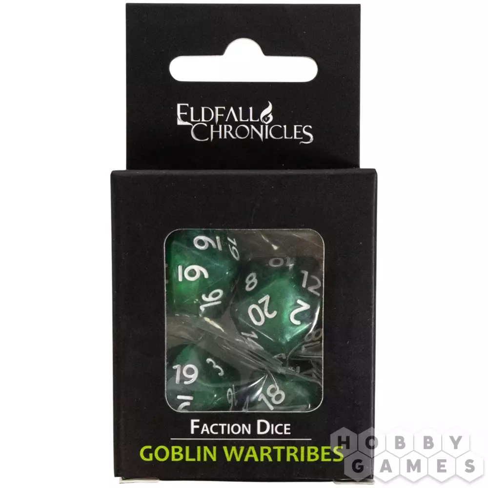 Этот набор включает 4 перламутровых кубика, выполненных в цветах фракции Goblin Wartribes и украшенных её гербом. Уникальный дизайн подчёркивает принадлежность к фракции, делая игру ещё атмосфернее.