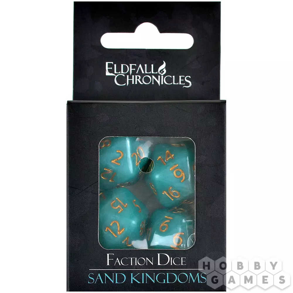 Этот набор включает 4 перламутровых кубика, выполненных в цветах фракции Sand Kingdoms и украшенных её гербом. Уникальный дизайн подчёркивает принадлежность к фракции, делая игру ещё атмосфернее.