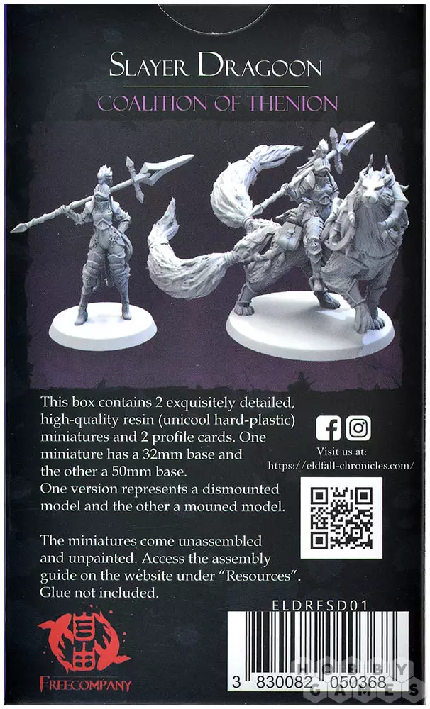 Этот набор содержит 2 миниатюры Slayer Dragoon, карту профиля и карту маунта, позволяющие собрать и разыграть две уникальные версии модели: