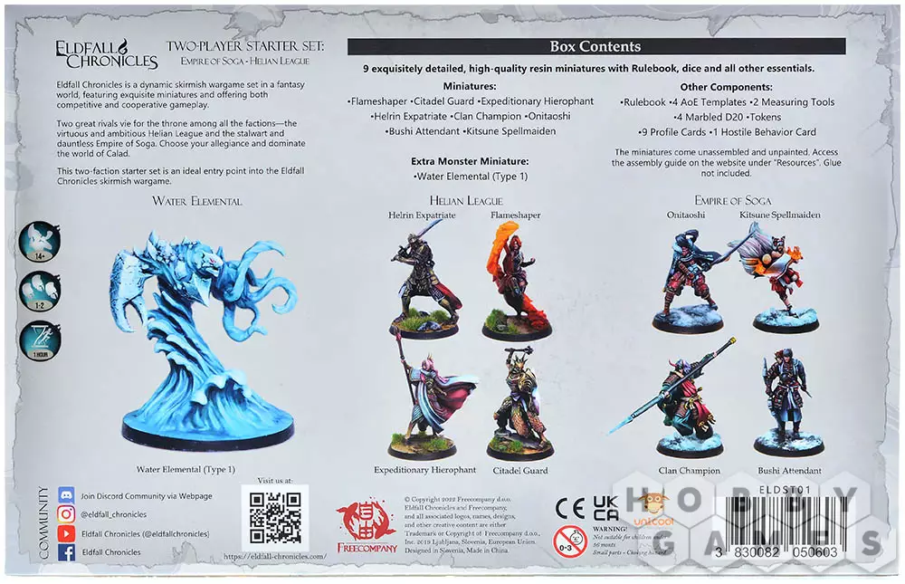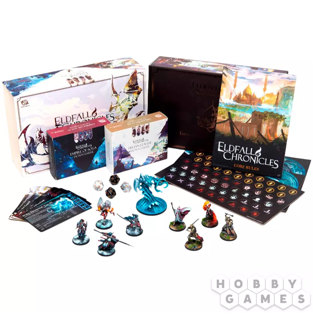 В этой коробке вы найдёте два стартовых набора фракций: Empire of Soga и Helian League. Данный комплект является отличной отправной точкой для погружения в мир тактических сражений Eldfall Chronicles.